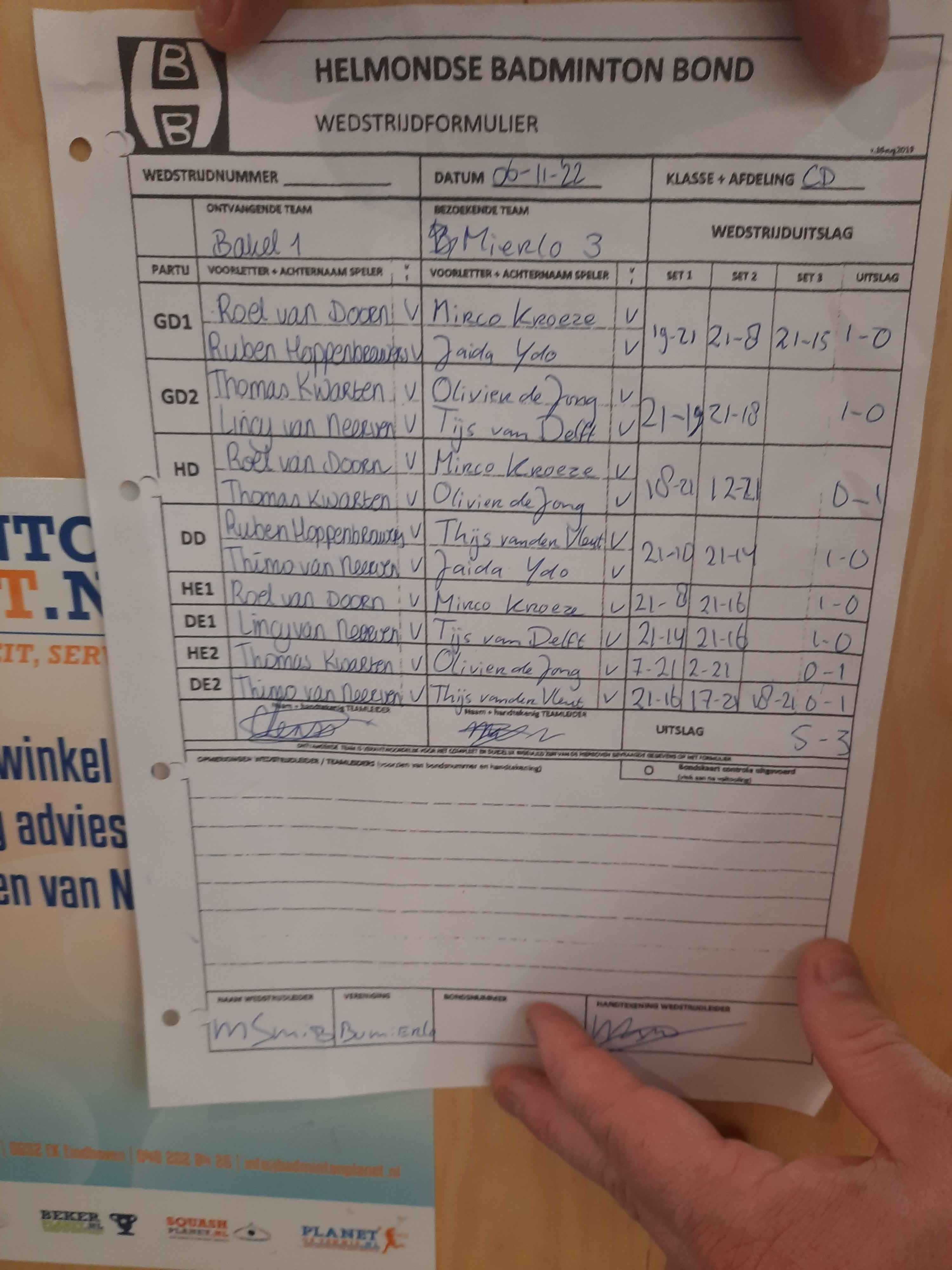 | 09:30 | zo. 18-12-2022 | Mierlo 3 | - | Bakel 1 | 3 | 7 - 1 |