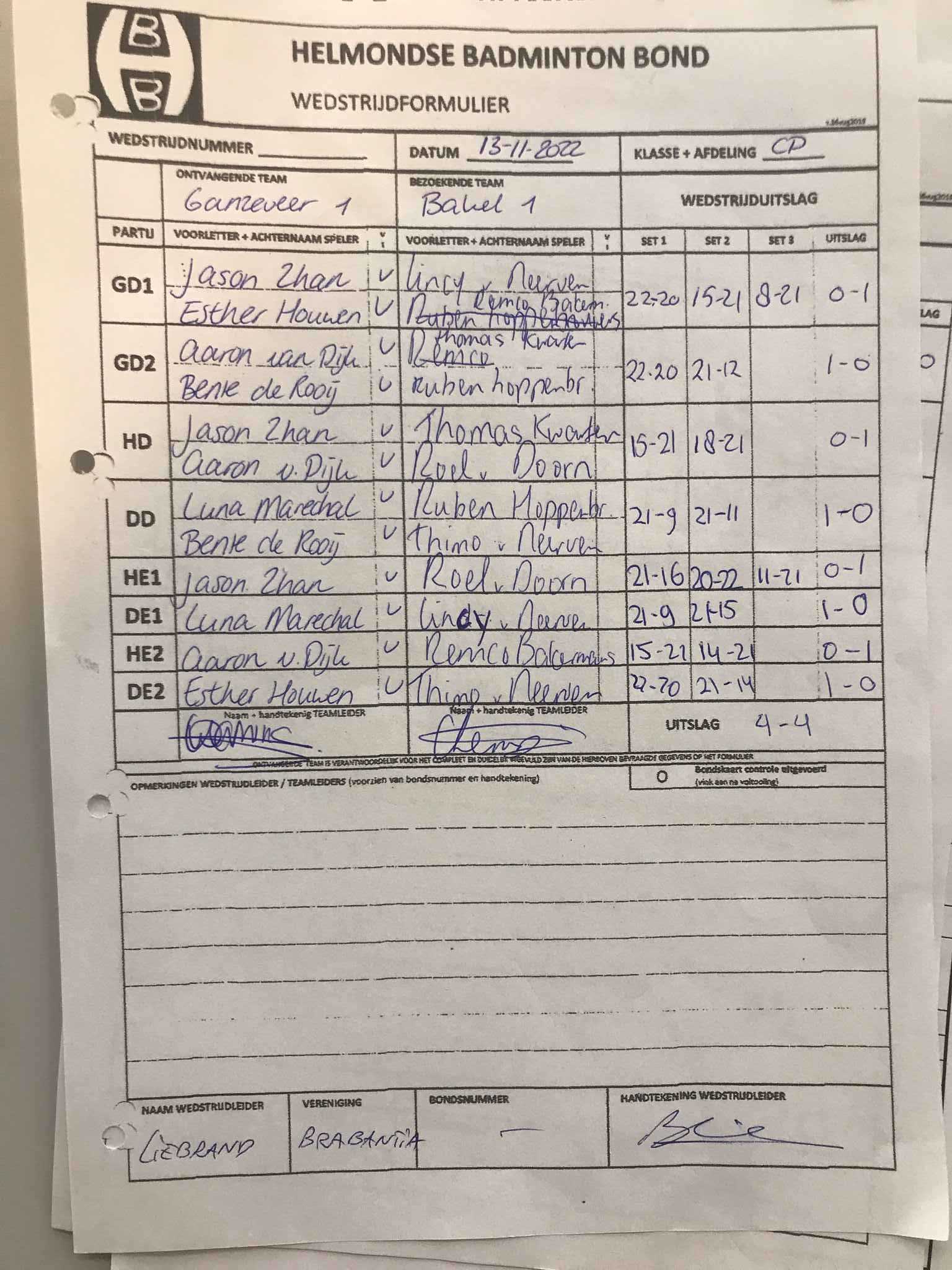 | 09:30 | zo. 13-11-2022 | Ganzeveer 1 | - | Bakel 1 | 11 | 4 - 4 | ||