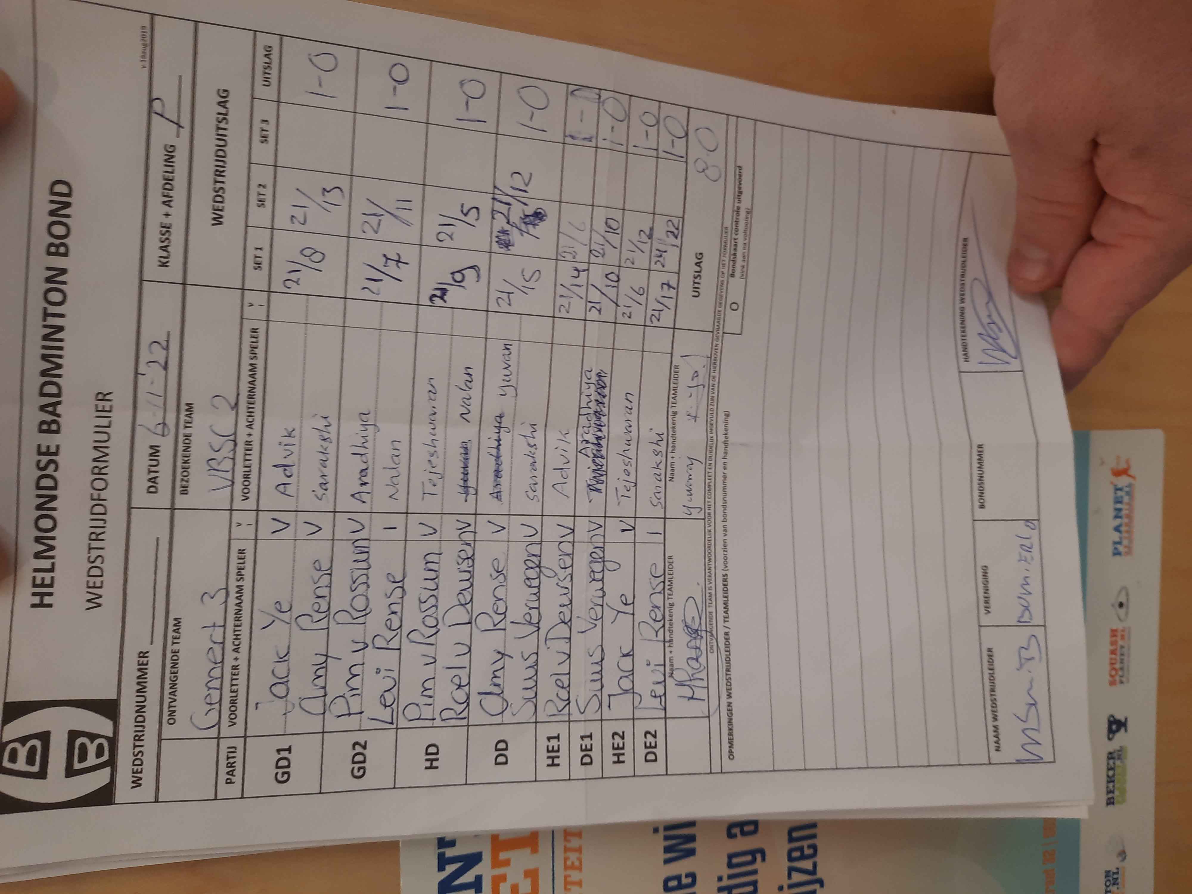 | 09:30 | zo. 27-11-2022 | Mixed 7 | - | Gemert 3 | 3 | 0 - 8 | ||