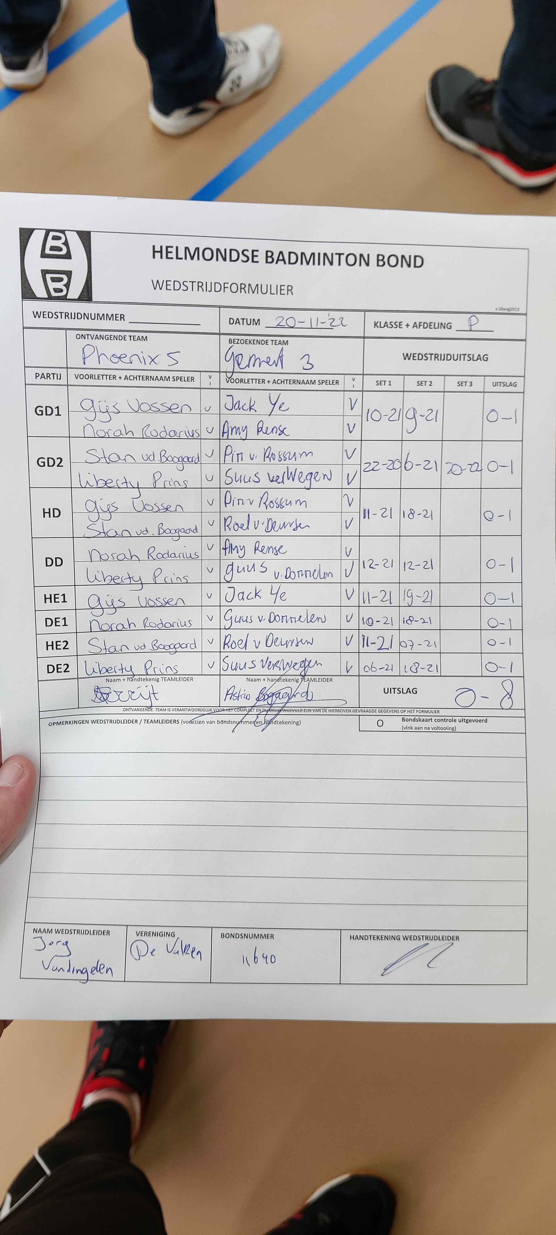 | 09:30 | zo. 20-11-2022 | Phoenix 5 | - | Gemert 3 | 3 | 0 - 8 | ||