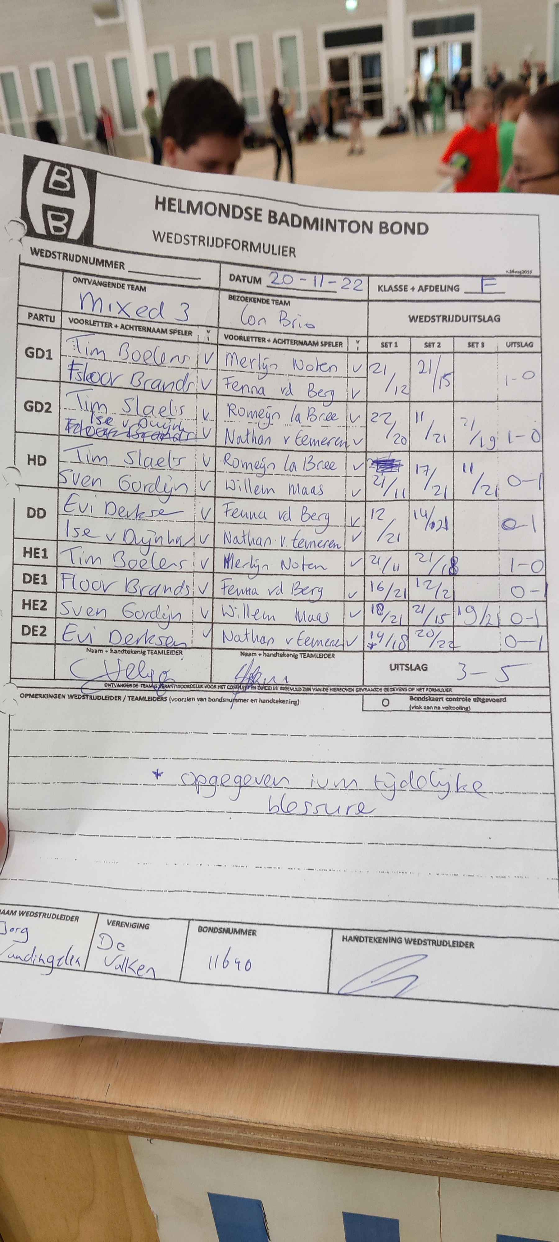 | 09:30 | zo. 20-11-2022 | Mixed 3 | - | Con Brio 1 | 5 | 3 - 5 | ||