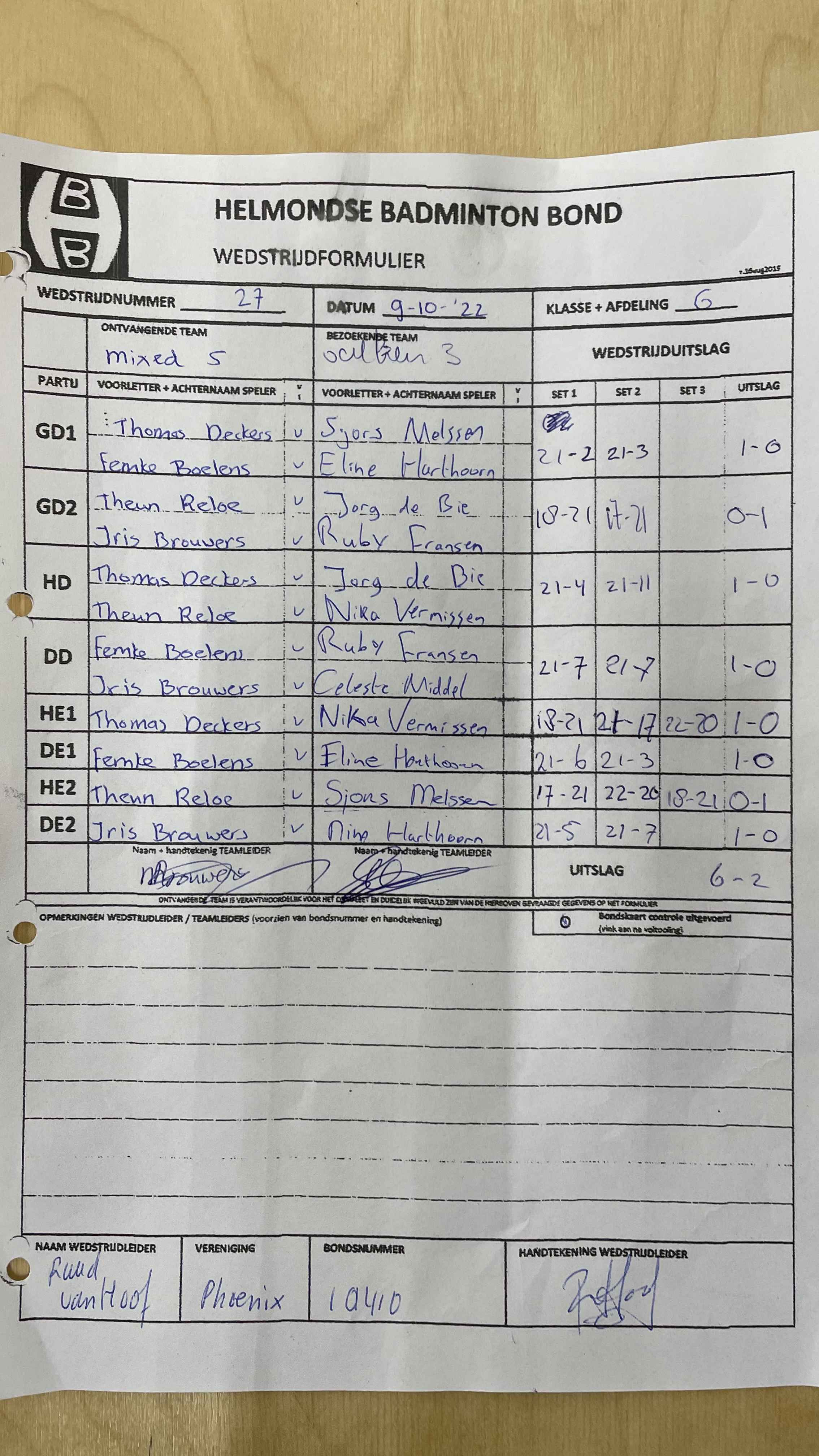 | 09:30 | zo. 16-10-2022 | Phoenix 2 | - | Mixed 5 | 13 | 3 - 5 | ||