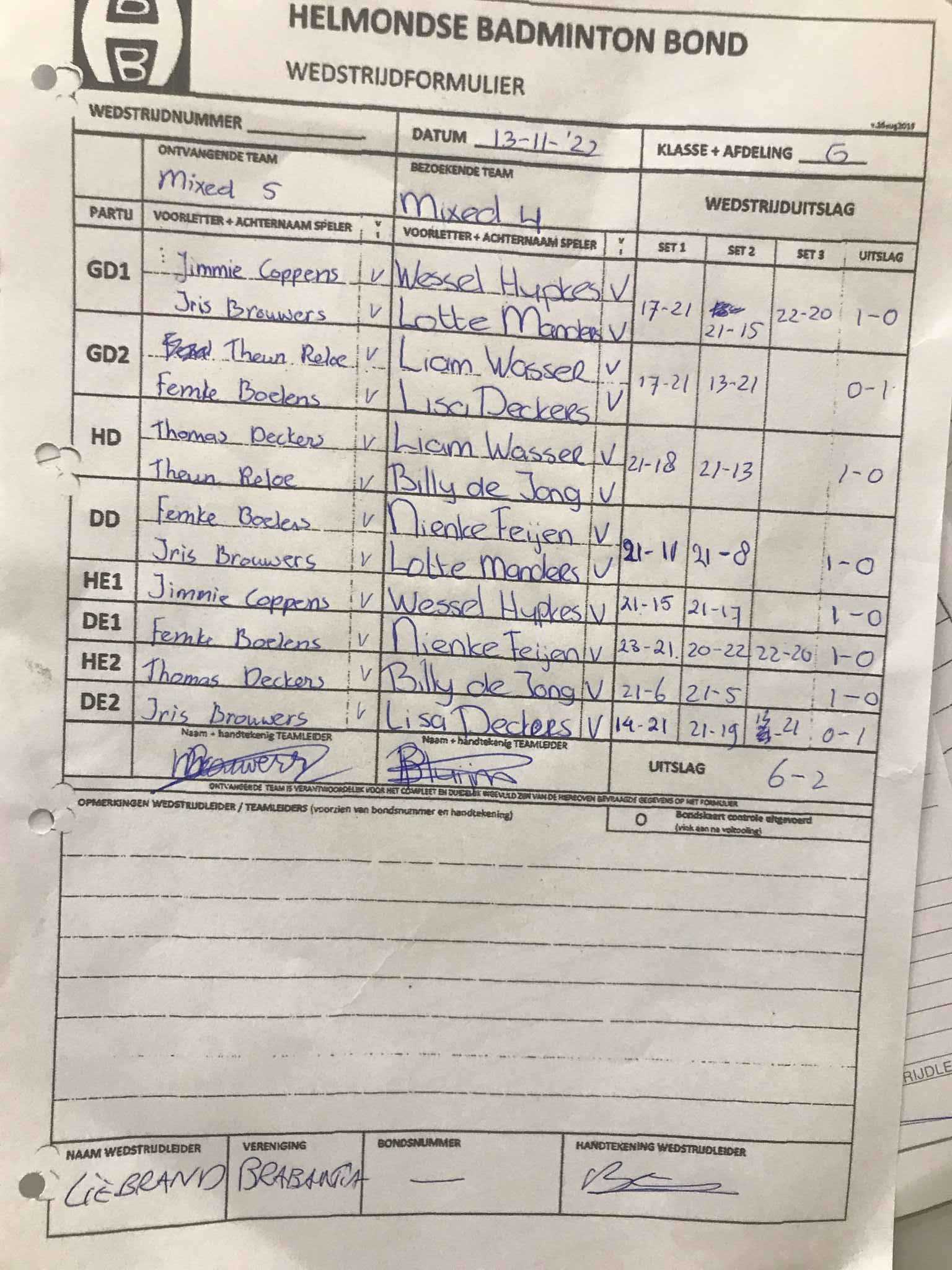 | 09:30 | zo. 13-11-2022 | Mixed 5 | - | Mixed 4 | 1 | 6 - 2 | ||