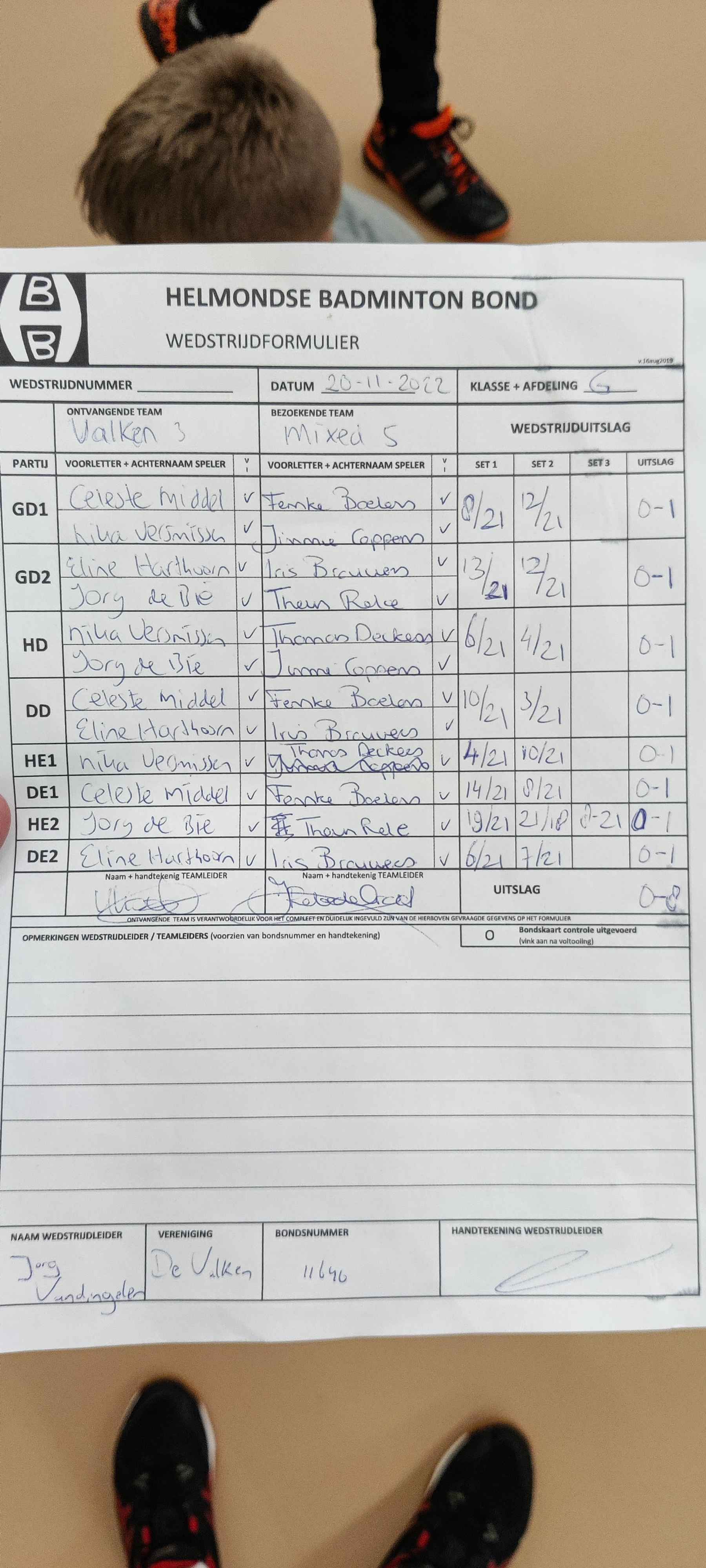 | 09:30 | zo. 20-11-2022 | De Valken 3 | - | Mixed 5 | 12 | 0 - 8 | ||