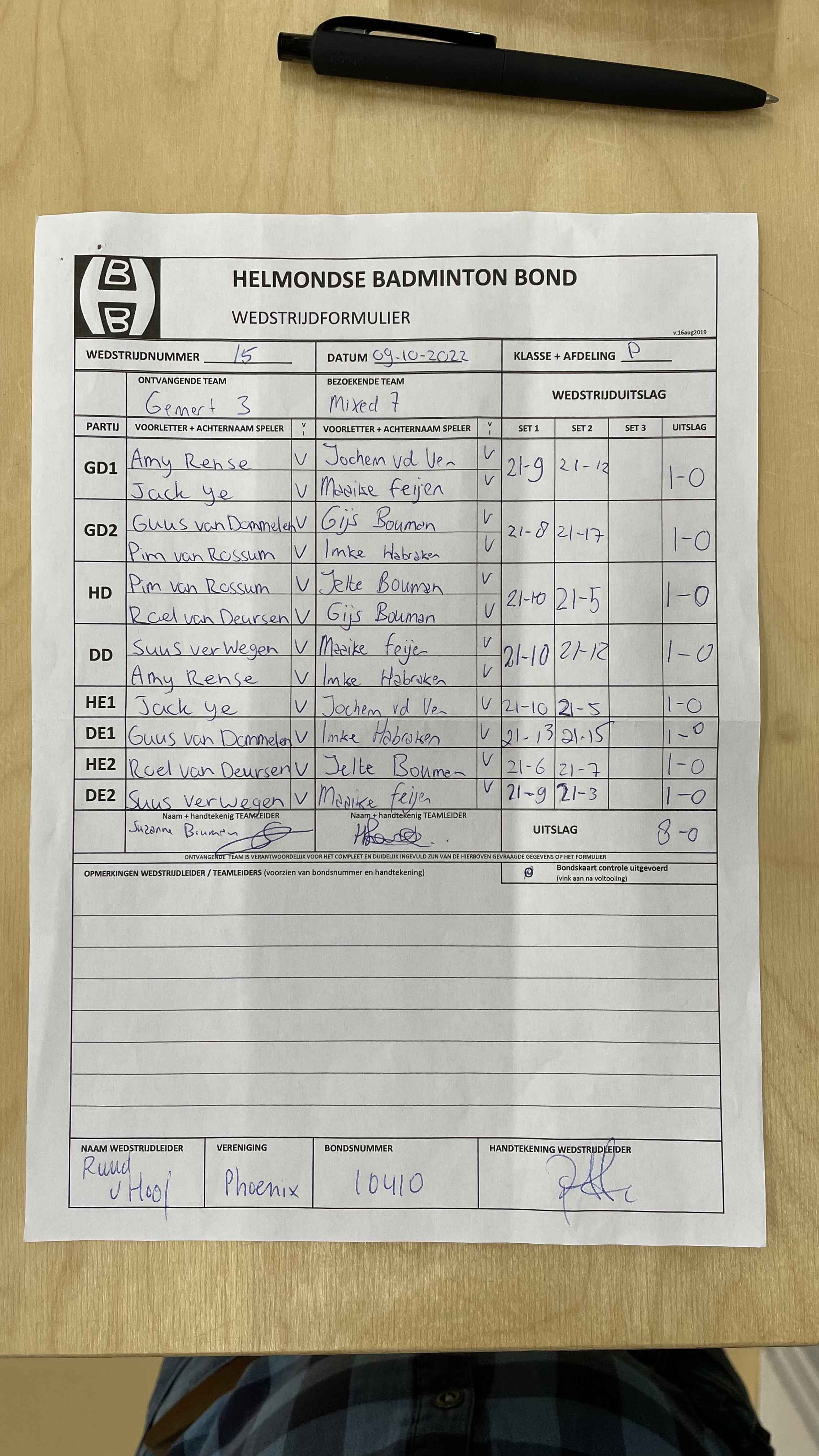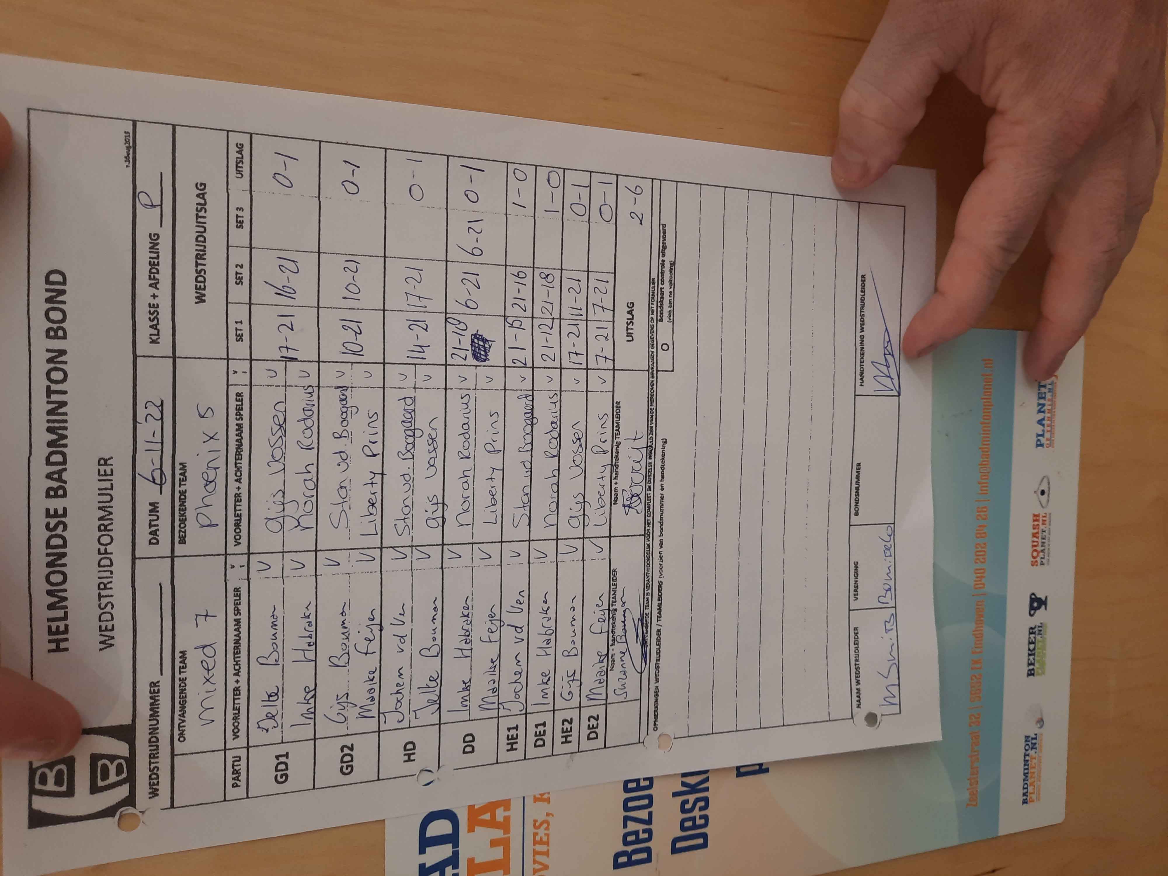 | 09:30 | zo. 06-11-2022 | Mixed 7 | - | Phoenix 5 | 1 | 2 - 6 | ||