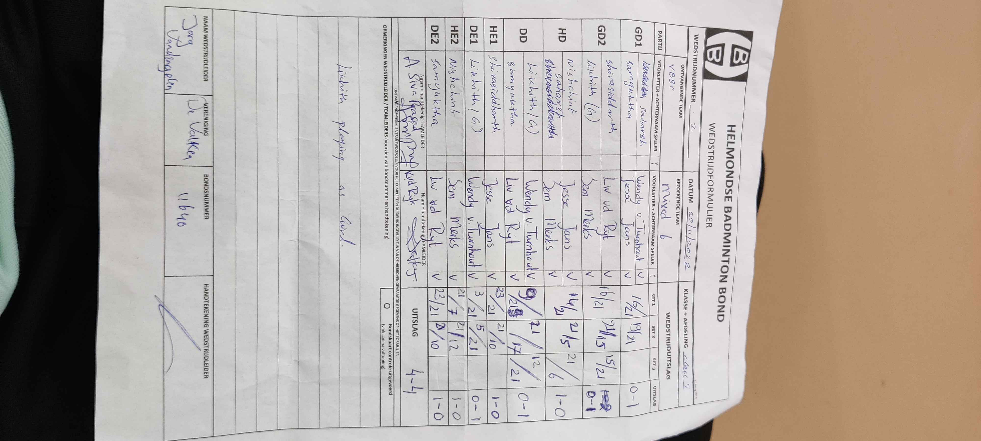 | 09:30 | zo. 20-11-2022 | VBSC 2 | - | Mixed 7 | 4 | 3 - 5 | ||