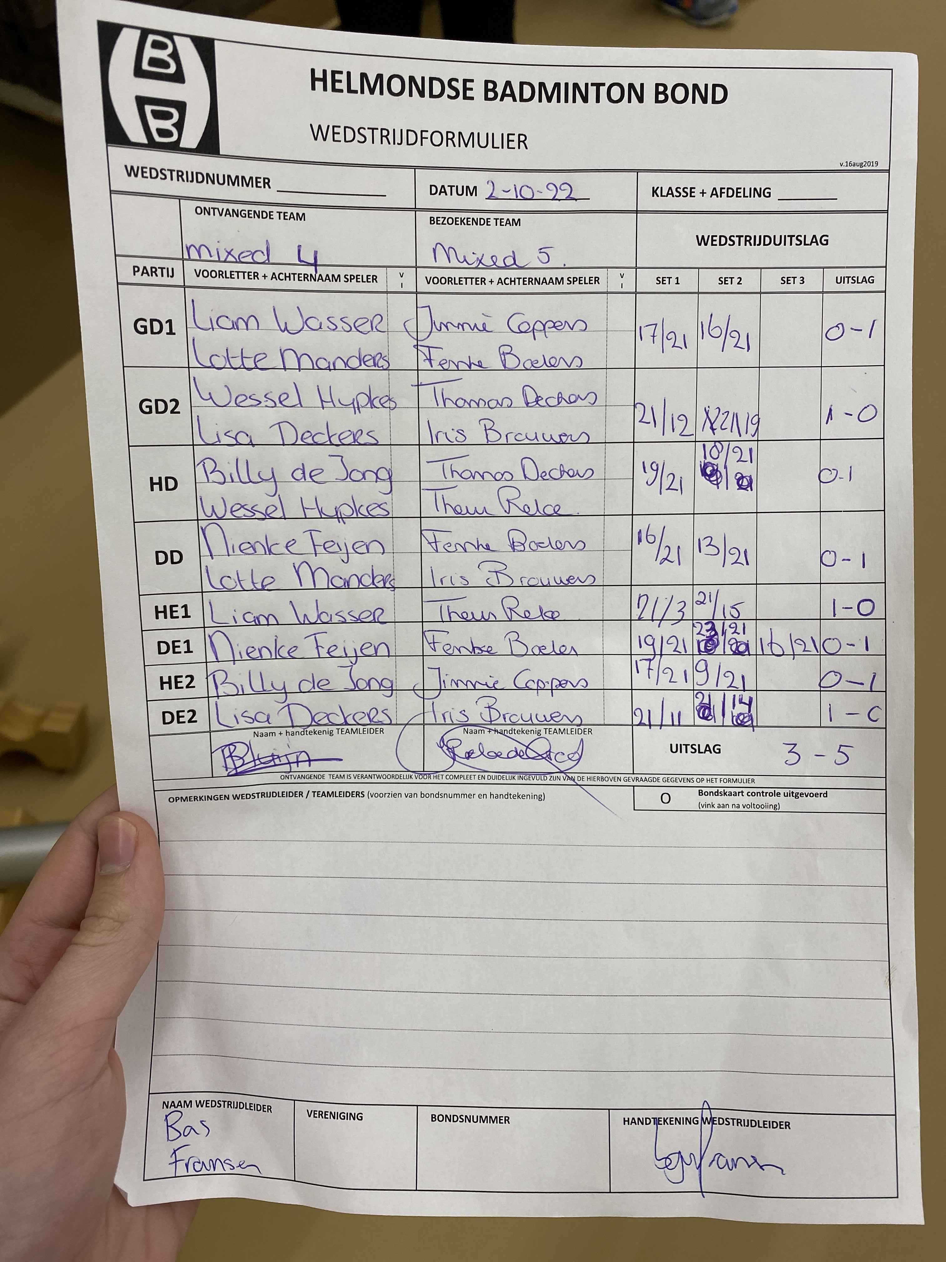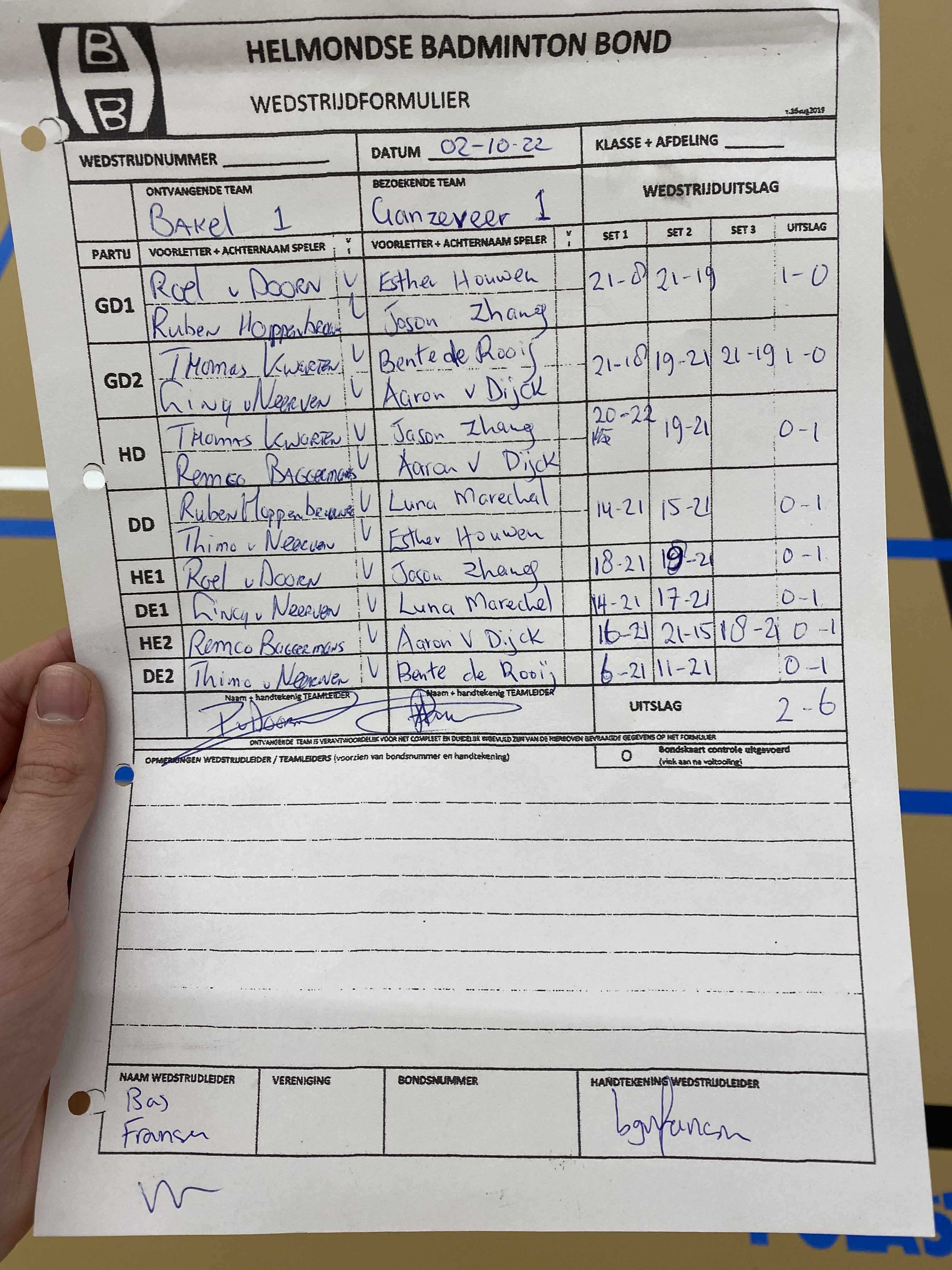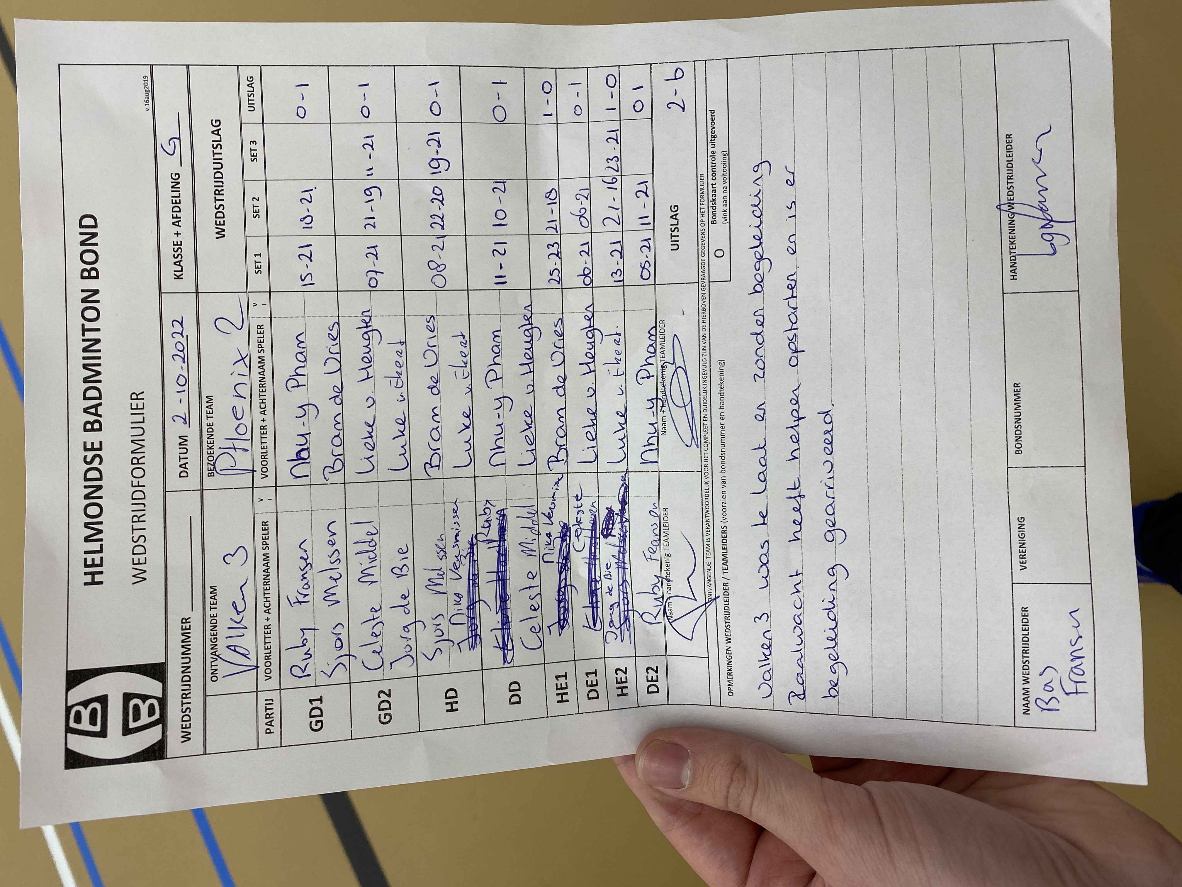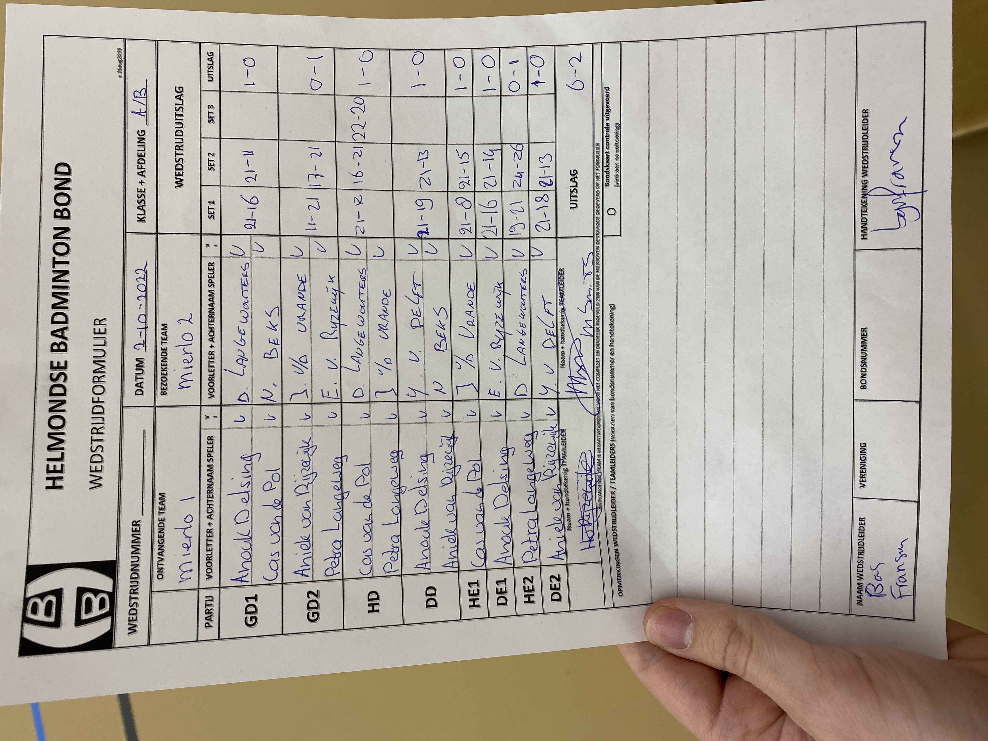 | Klasse | Nr | Thuis | - | Uit | Baan | |