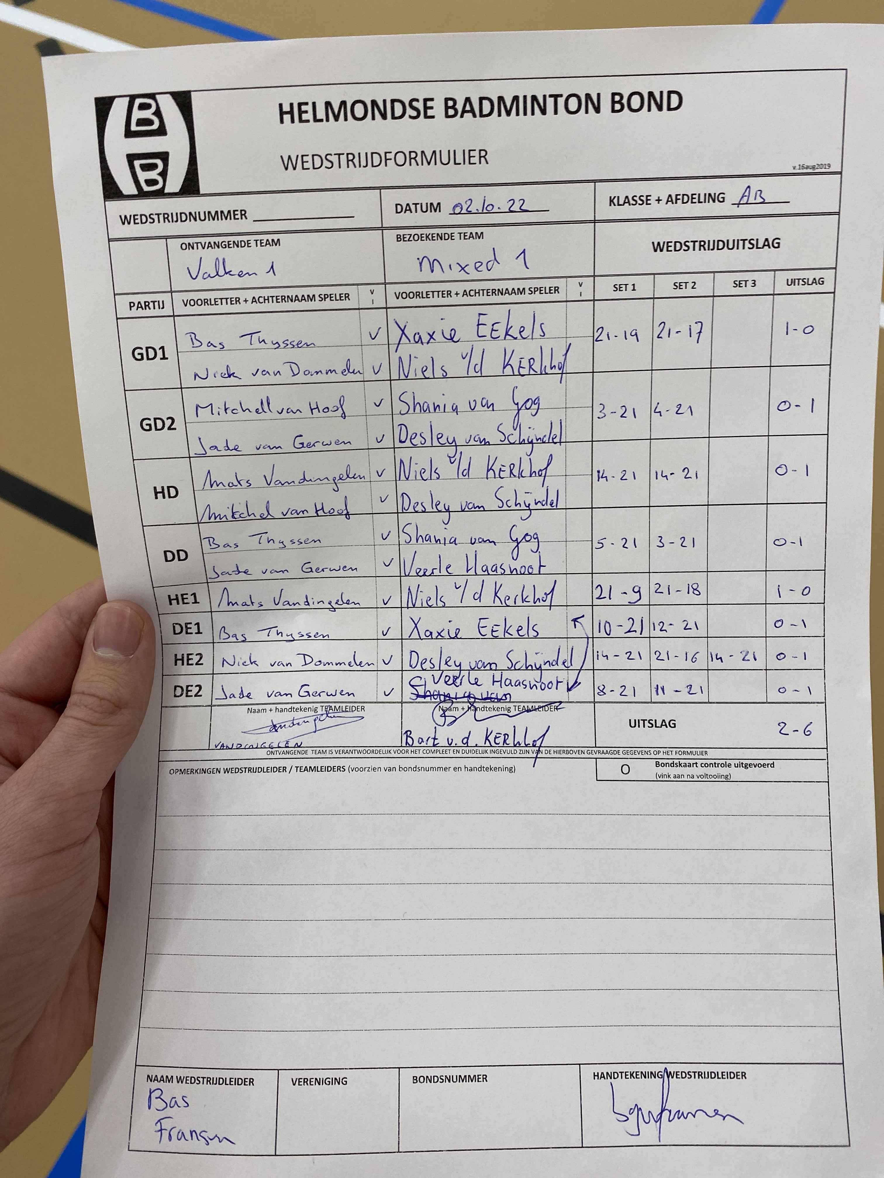 | AB | 2 | De Valken 1 | - | Mixed 1 | 2 | |