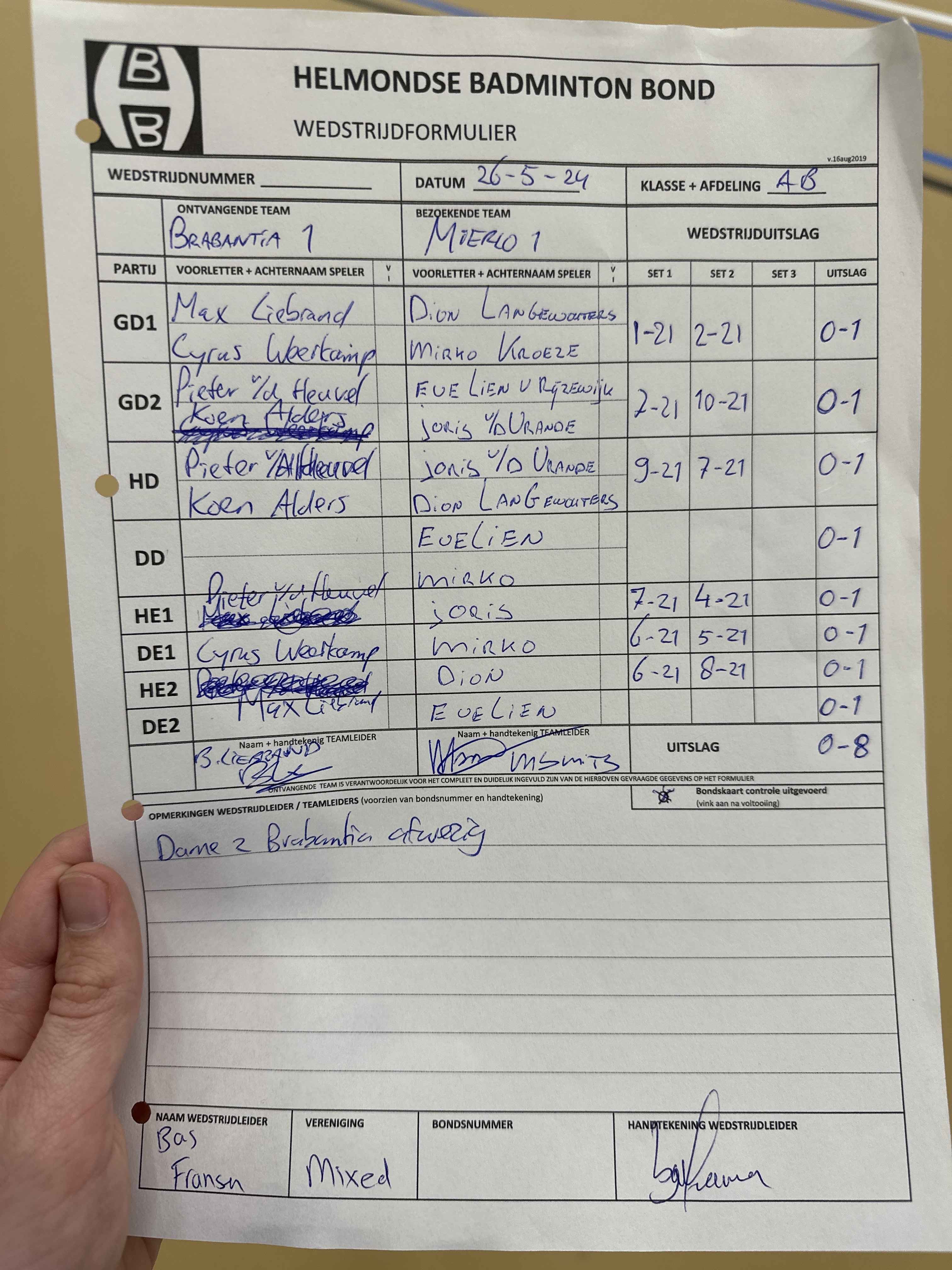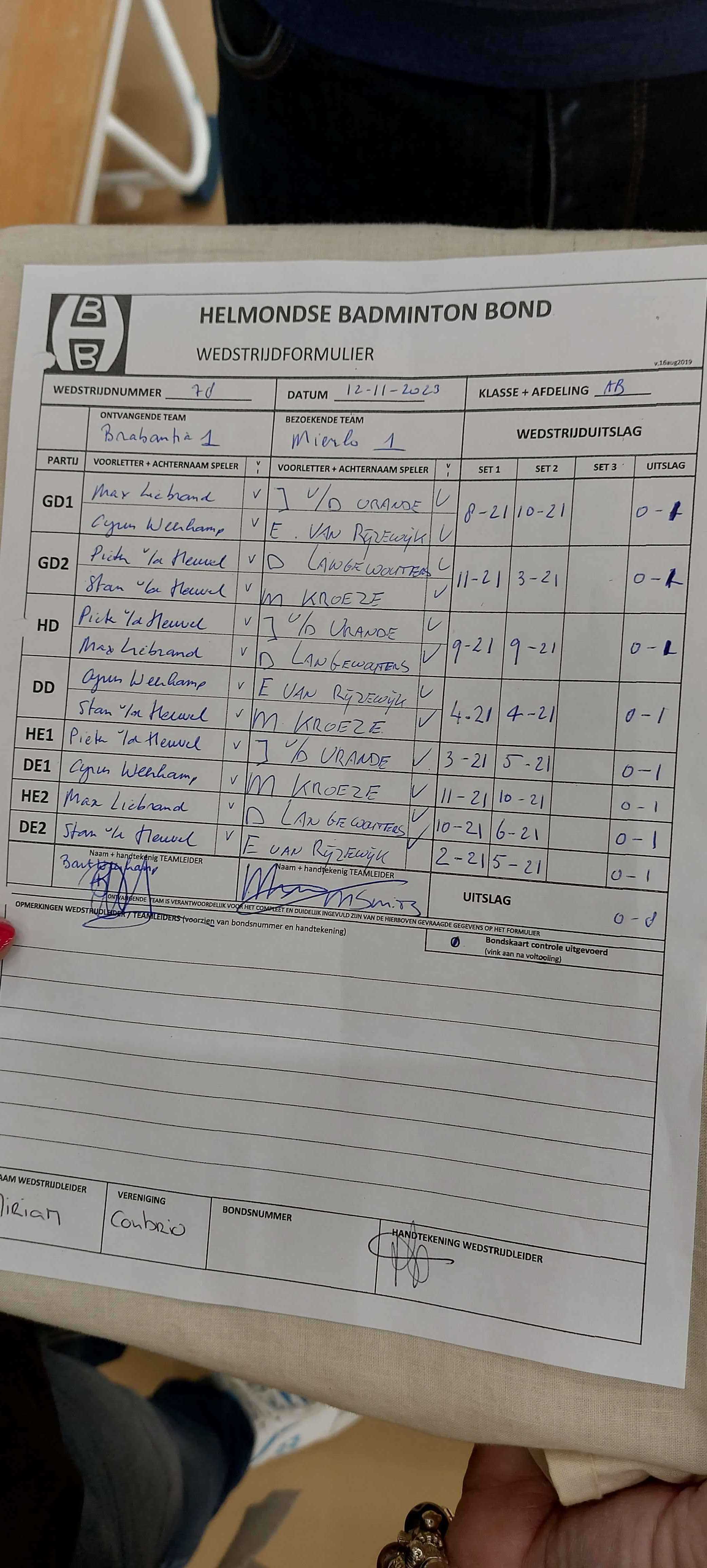 | 09:30 | zo. 12-11-2023 | Brabantia 1 | - | Mierlo 1 | 1 | 0 - 8 | ||