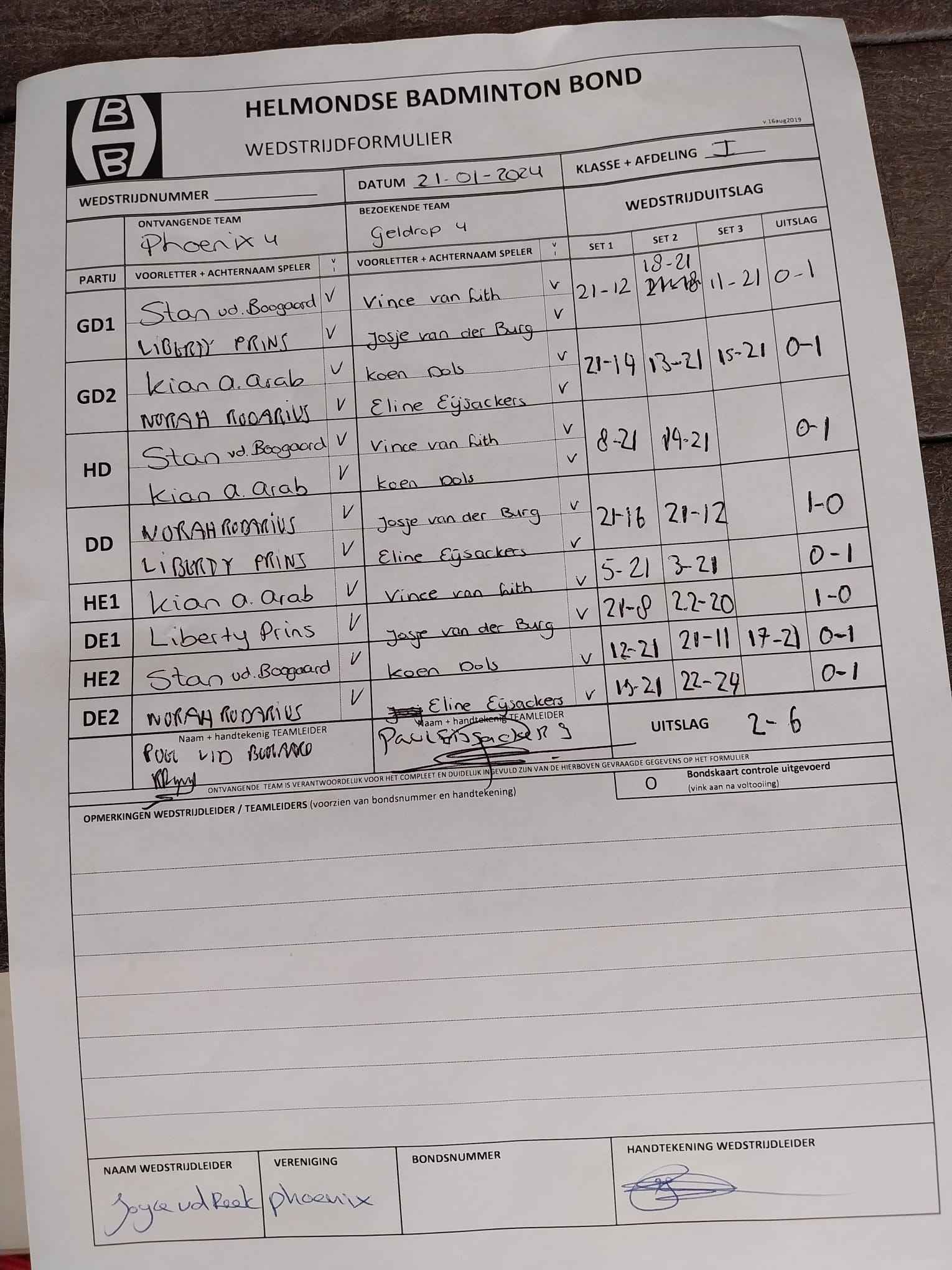 | 09:30 | zo. 21-01-2024 | Phoenix 4 | - | Geldrop 4 | 2 | 2 - 6 | ||