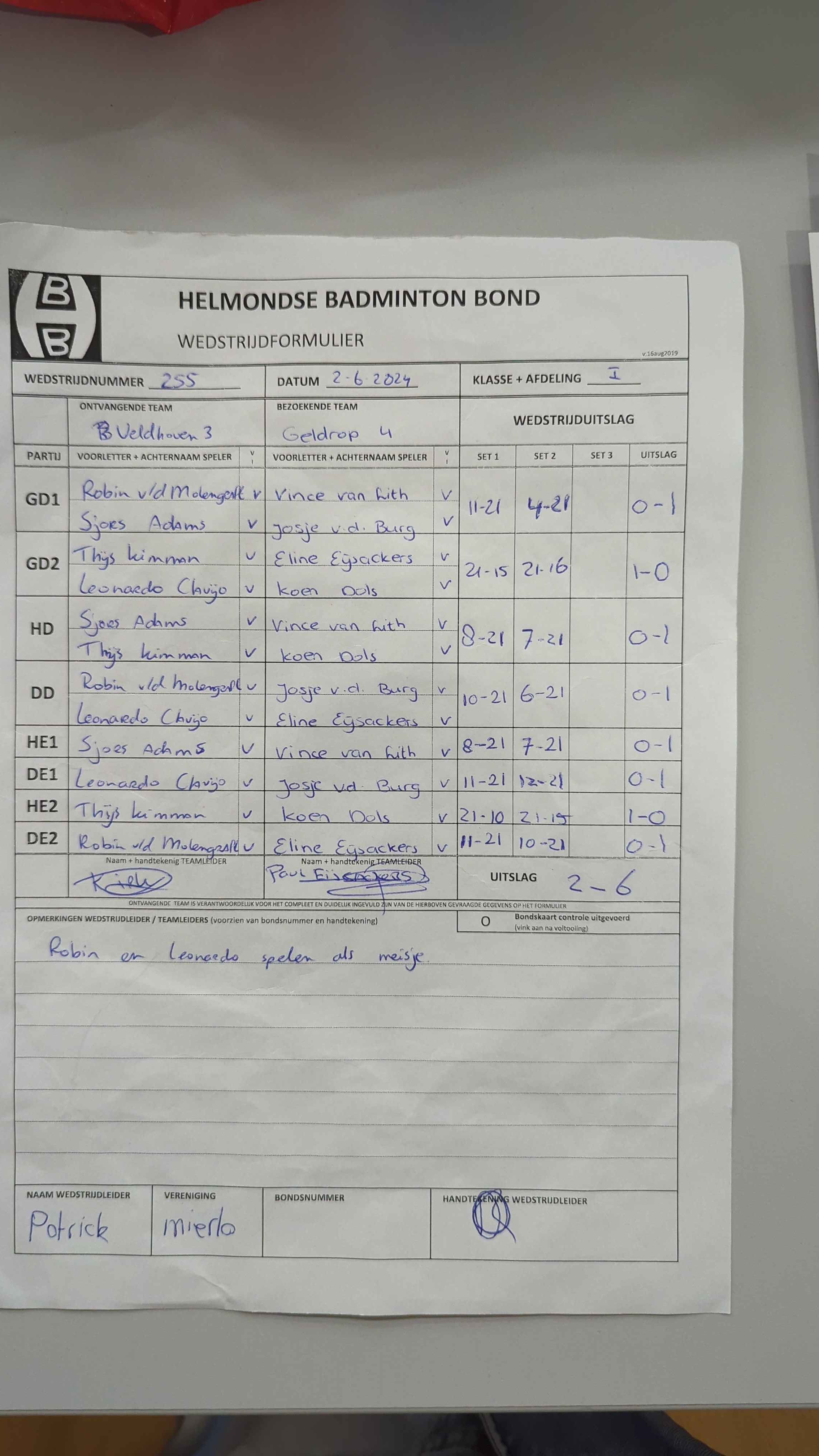 | 09:30 | zo. 02-06-2024 | Veldhoven 3 | - | Geldrop 4 | 15 | 2 - 6 |