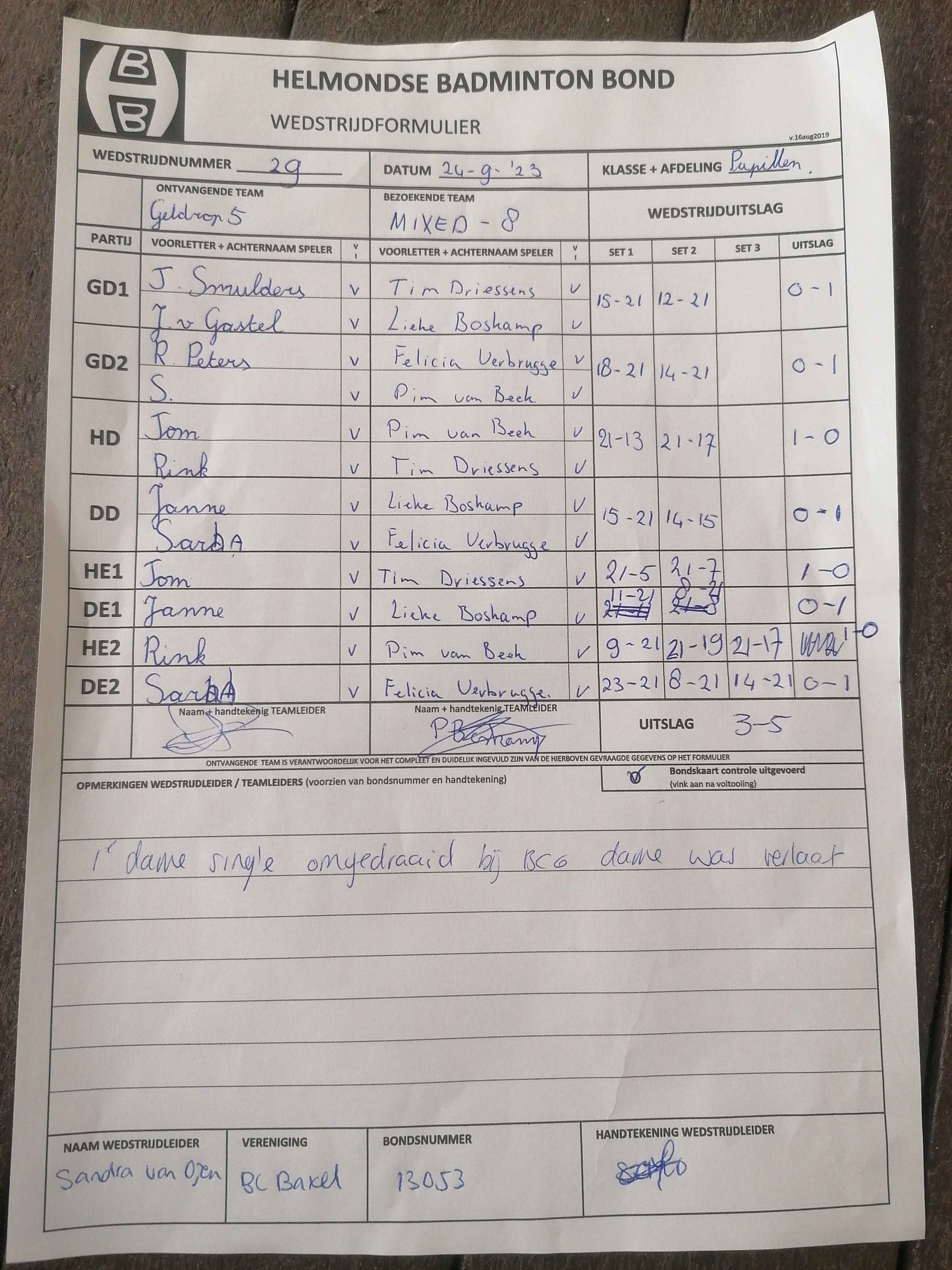 | 09:30 | zo. 24-09-2023 | Geldrop 5 | - | Mixed 8 | 11 | 3 - 5 | ||