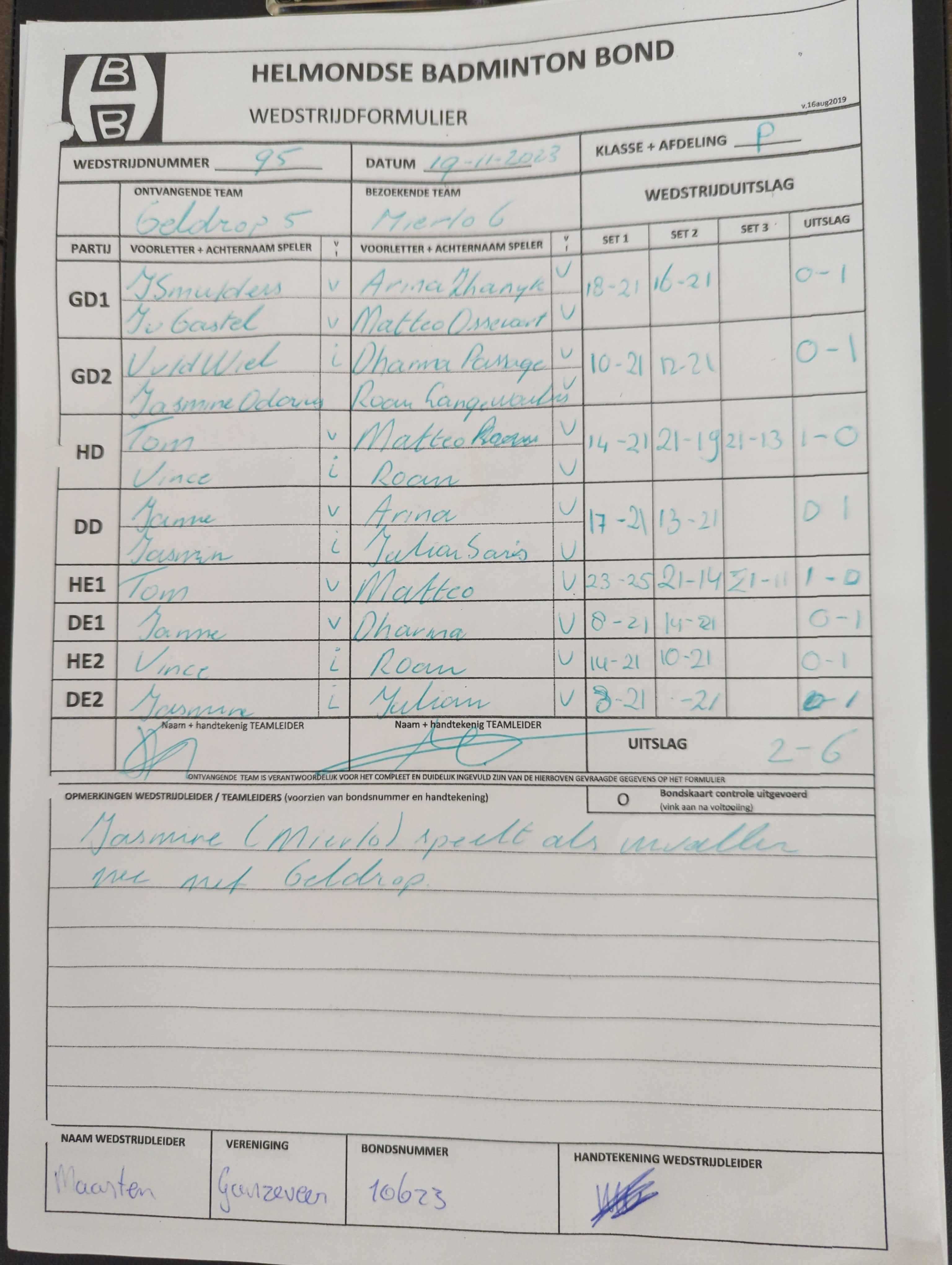 | 09:30 | zo. 29-10-2023 | Mixed 7 | - | Geldrop 5 | 1 | 7 - 1 | ||
