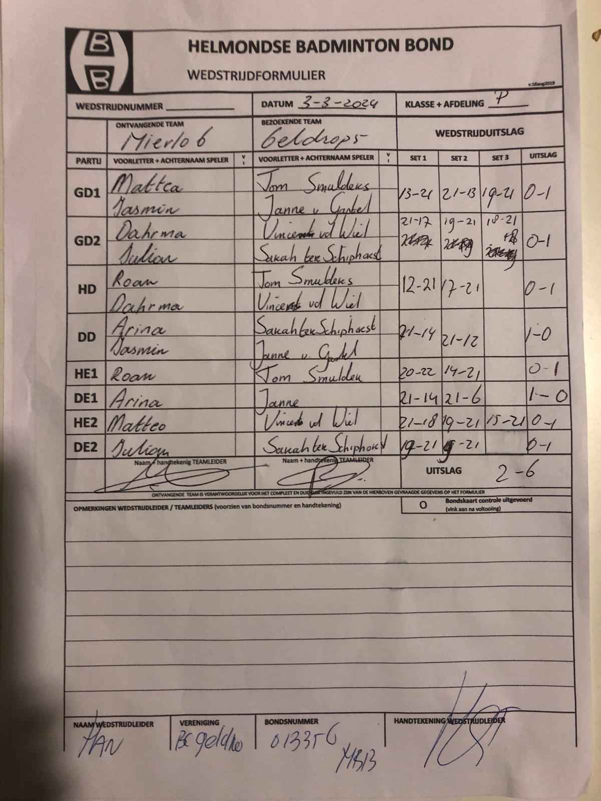 | 09:30 | zo. 03-03-2024 | Mierlo 6 | - | Geldrop 5 | 11 | 2 - 6 | ||
