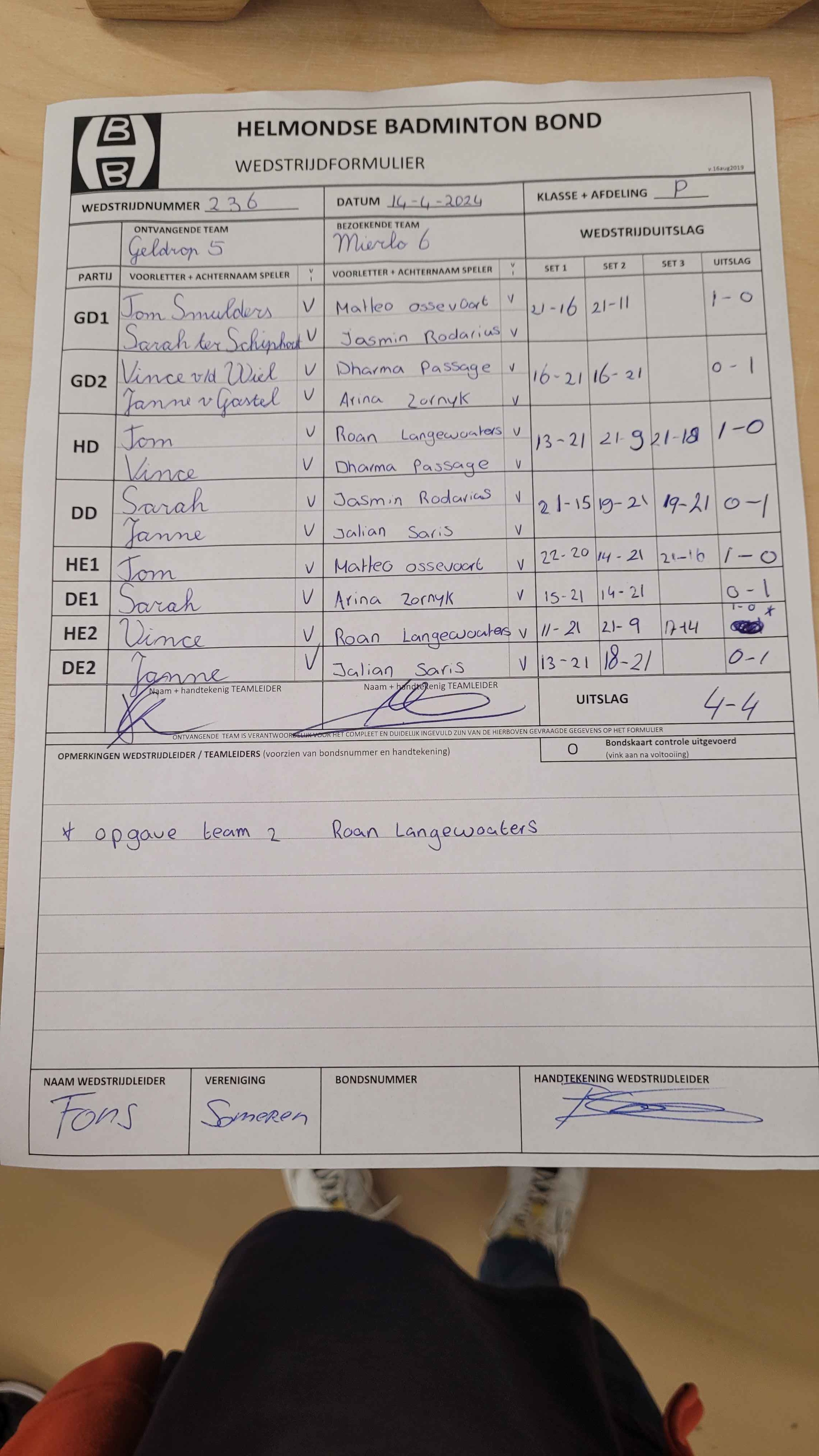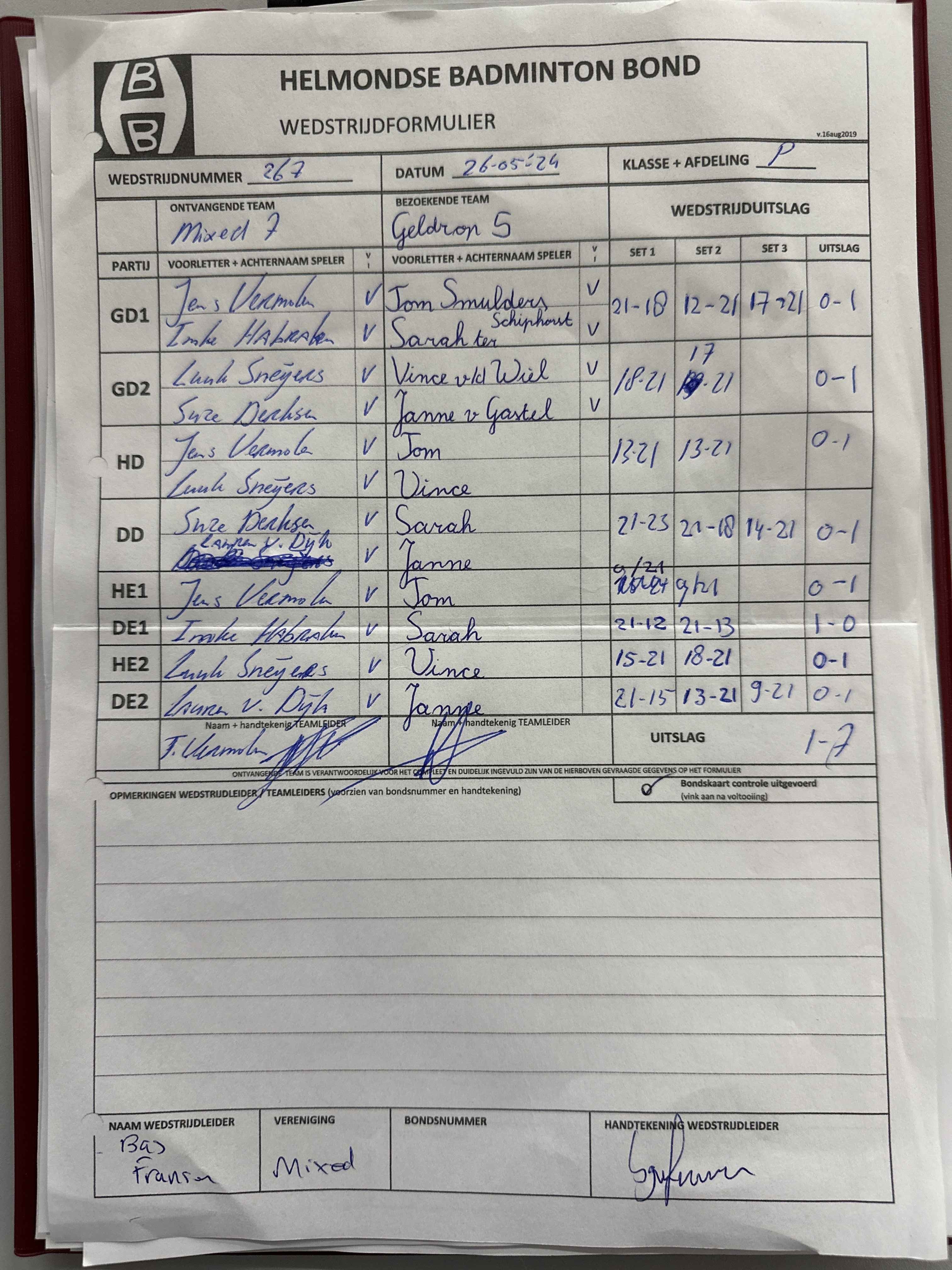 | 09:30 | zo. 26-05-2024 | Mixed 7 | - | Geldrop 5 | 12 | 1 - 7 |
