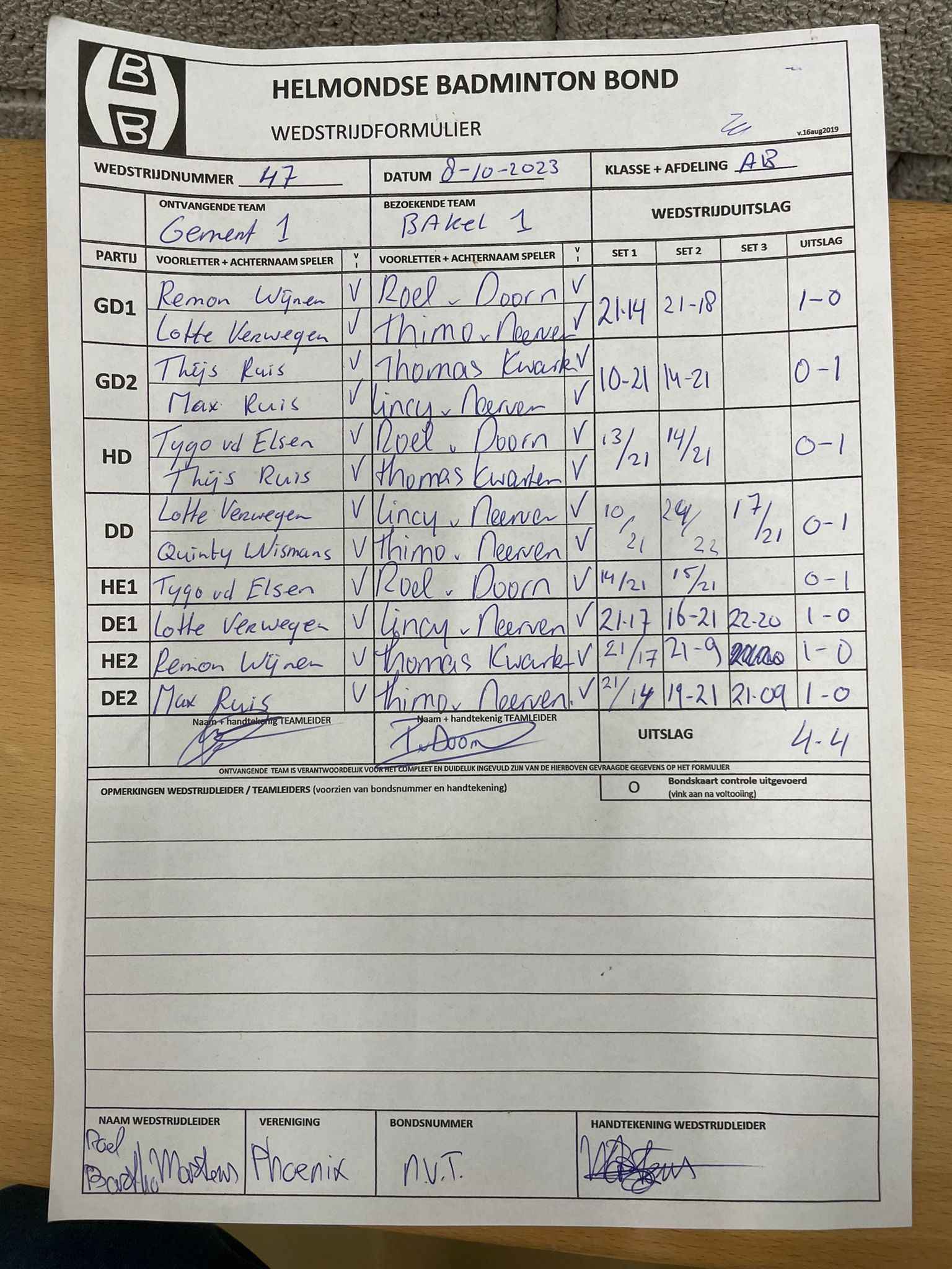 | 09:30 | zo. 08-10-2023 | Gemert 1 | - | Bakel 1 | 3 | 4 - 4 | ||