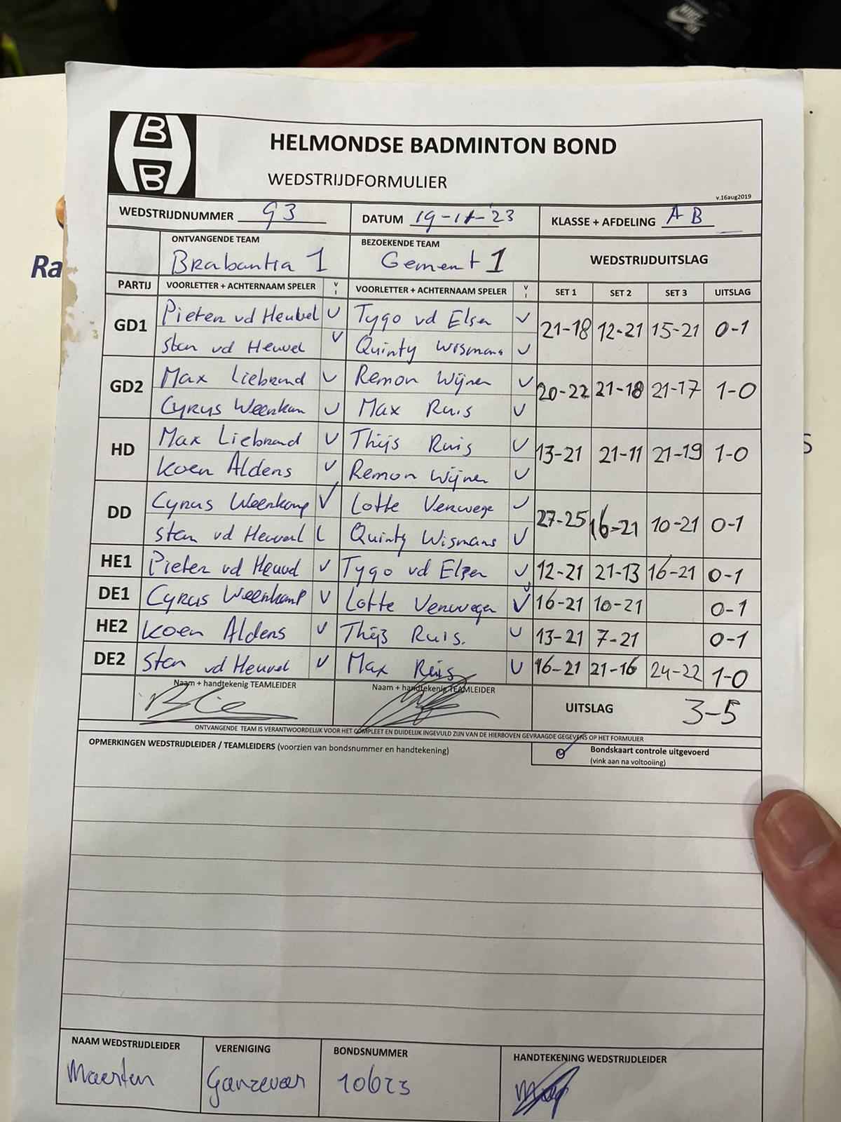 | 09:30 | zo. 19-11-2023 | Brabantia 1 | - | Gemert 1 | 5 | 3 - 5 | ||
