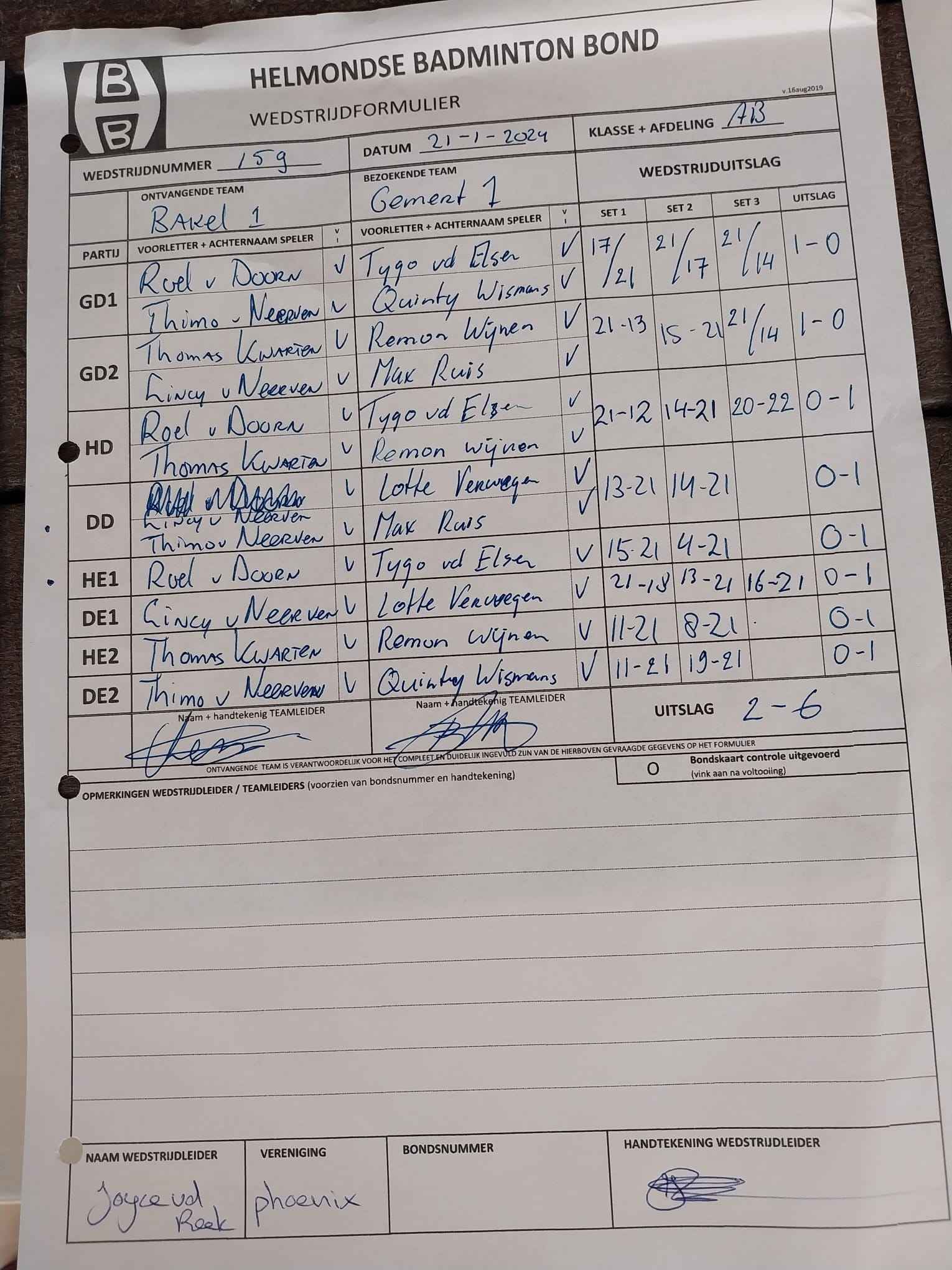 | 09:30 | zo. 21-01-2024 | Bakel 1 | - | Gemert 1 | 15 | 2 - 6 | ||