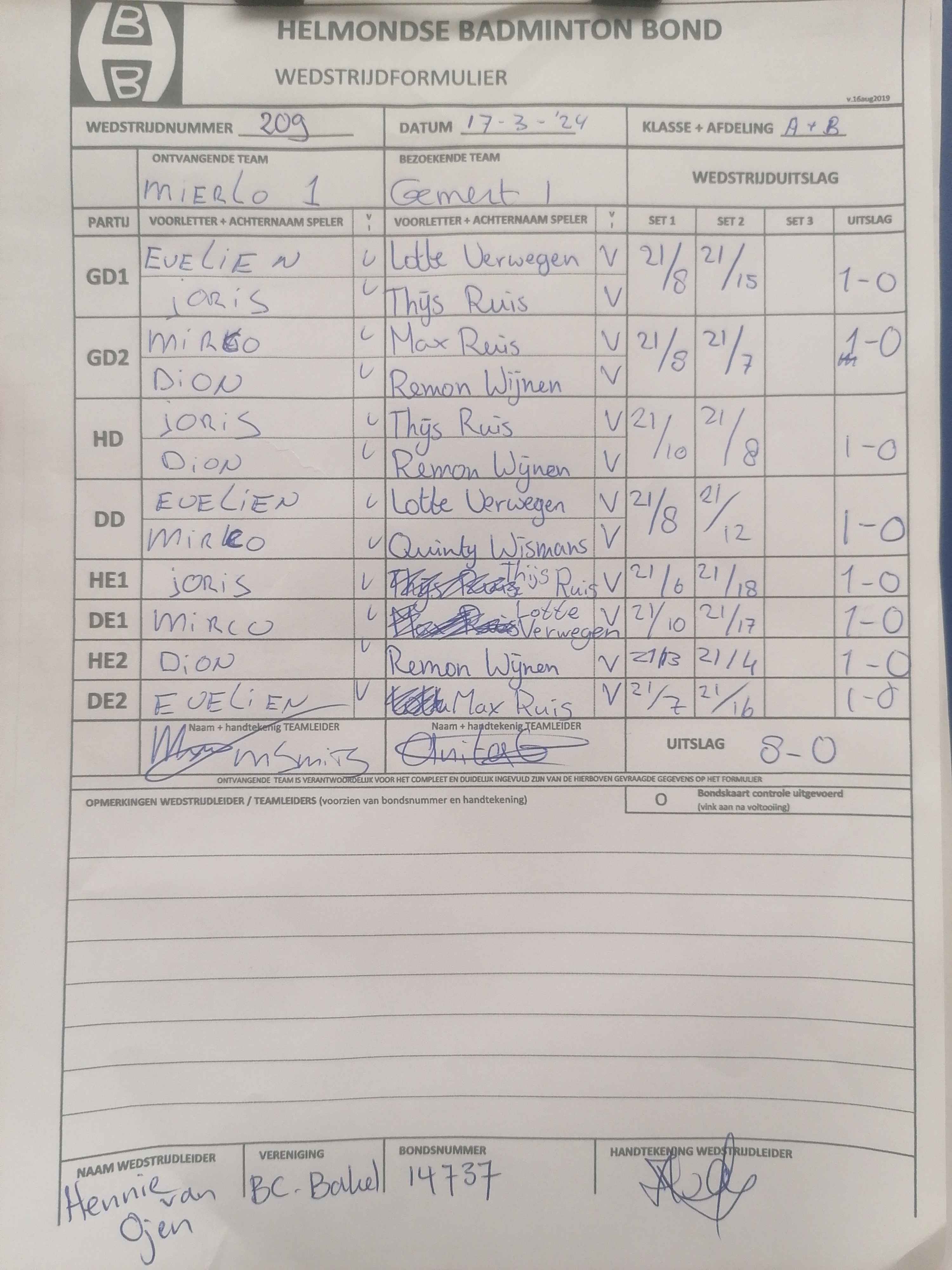 | 09:30 | zo. 17-03-2024 | Mierlo 1 | - | Gemert 1 | 11 | 8 - 0 | ||