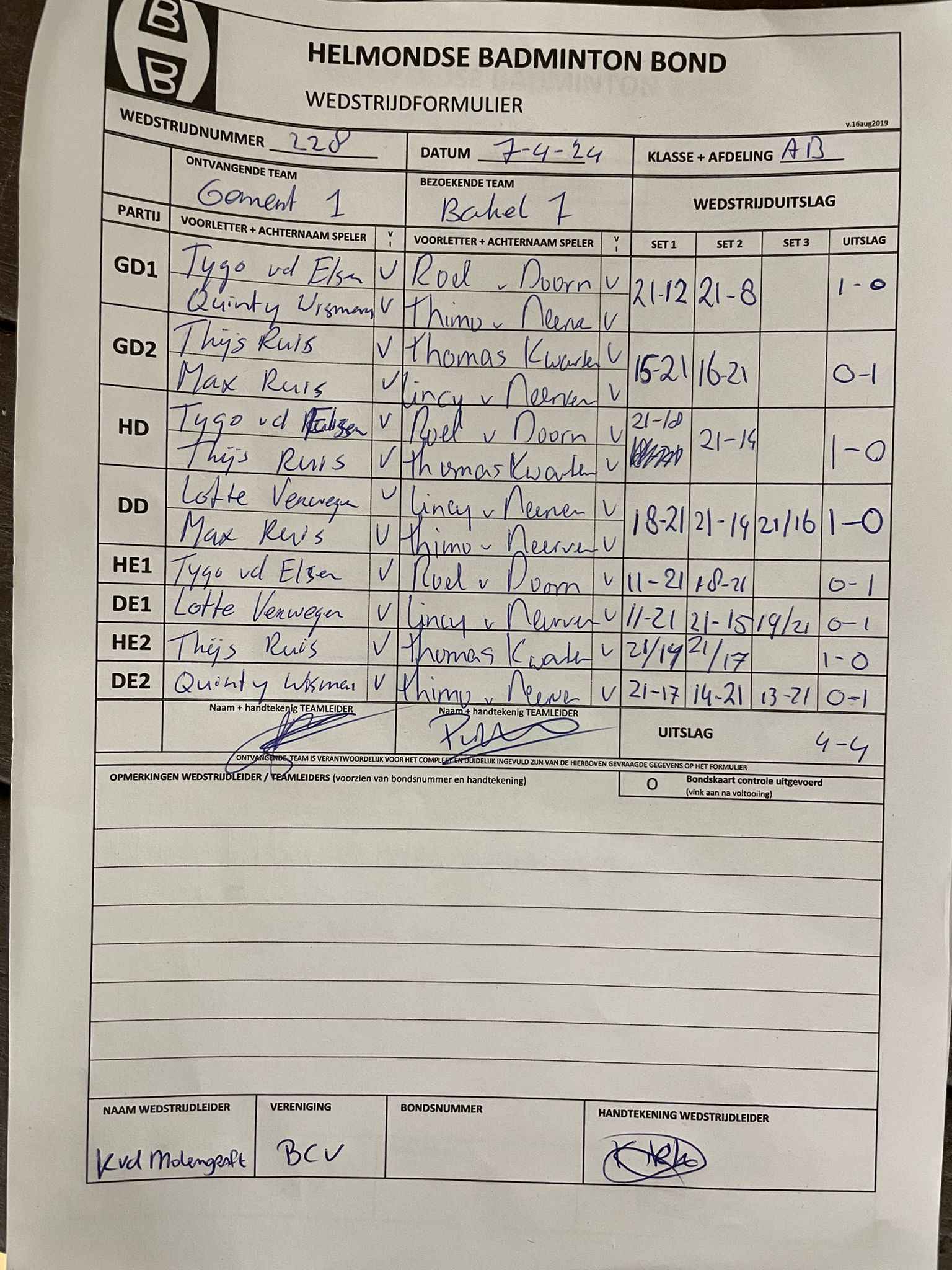 | 09:30 | zo. 07-04-2024 | Gemert 1 | - | Bakel 1 | 4 | 4 - 4 | ||