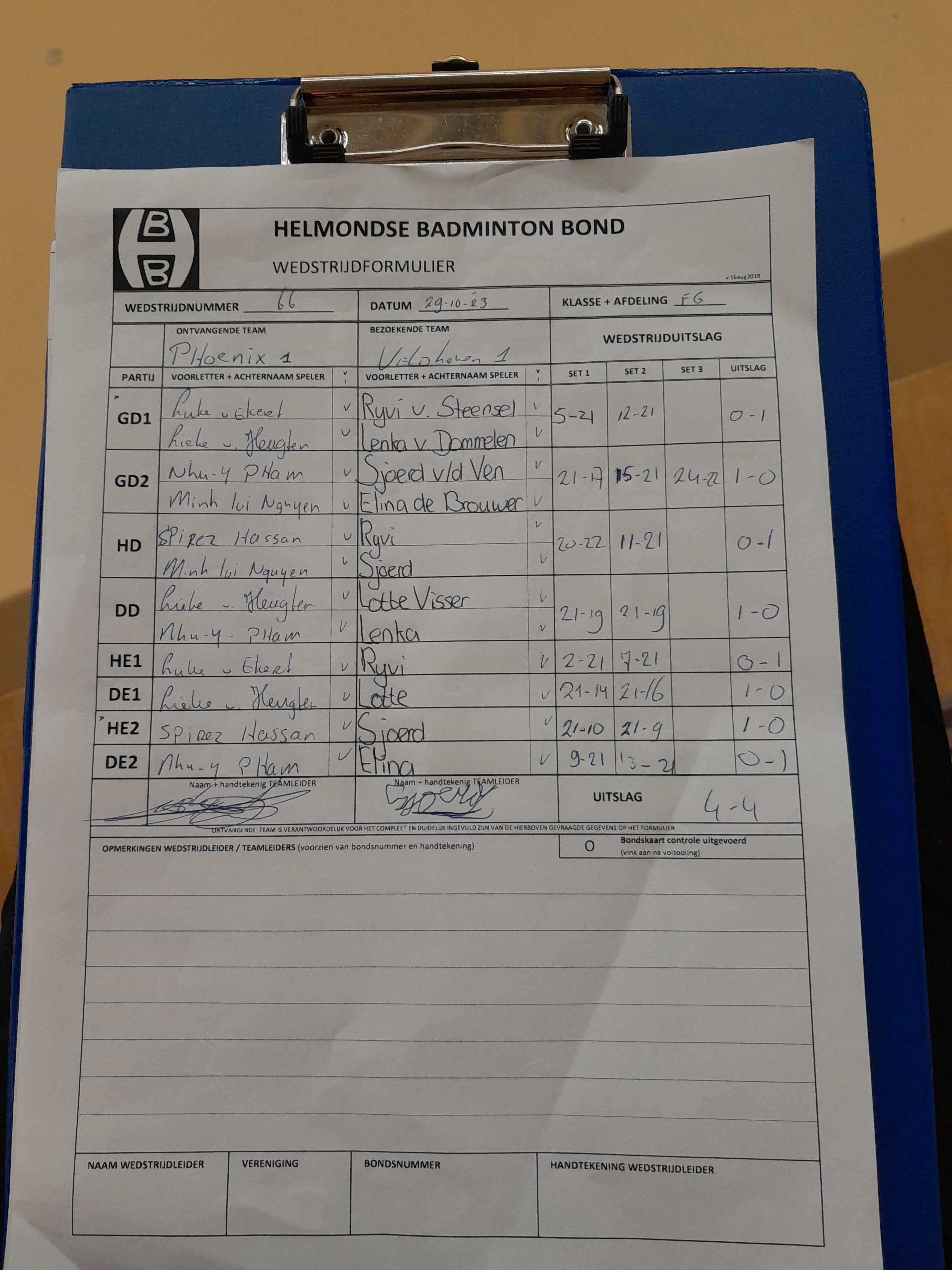 | 09:30 | zo. 12-11-2023 | Phoenix 1 | - | Gemert 3 | 10 | 4 - 4 | ||