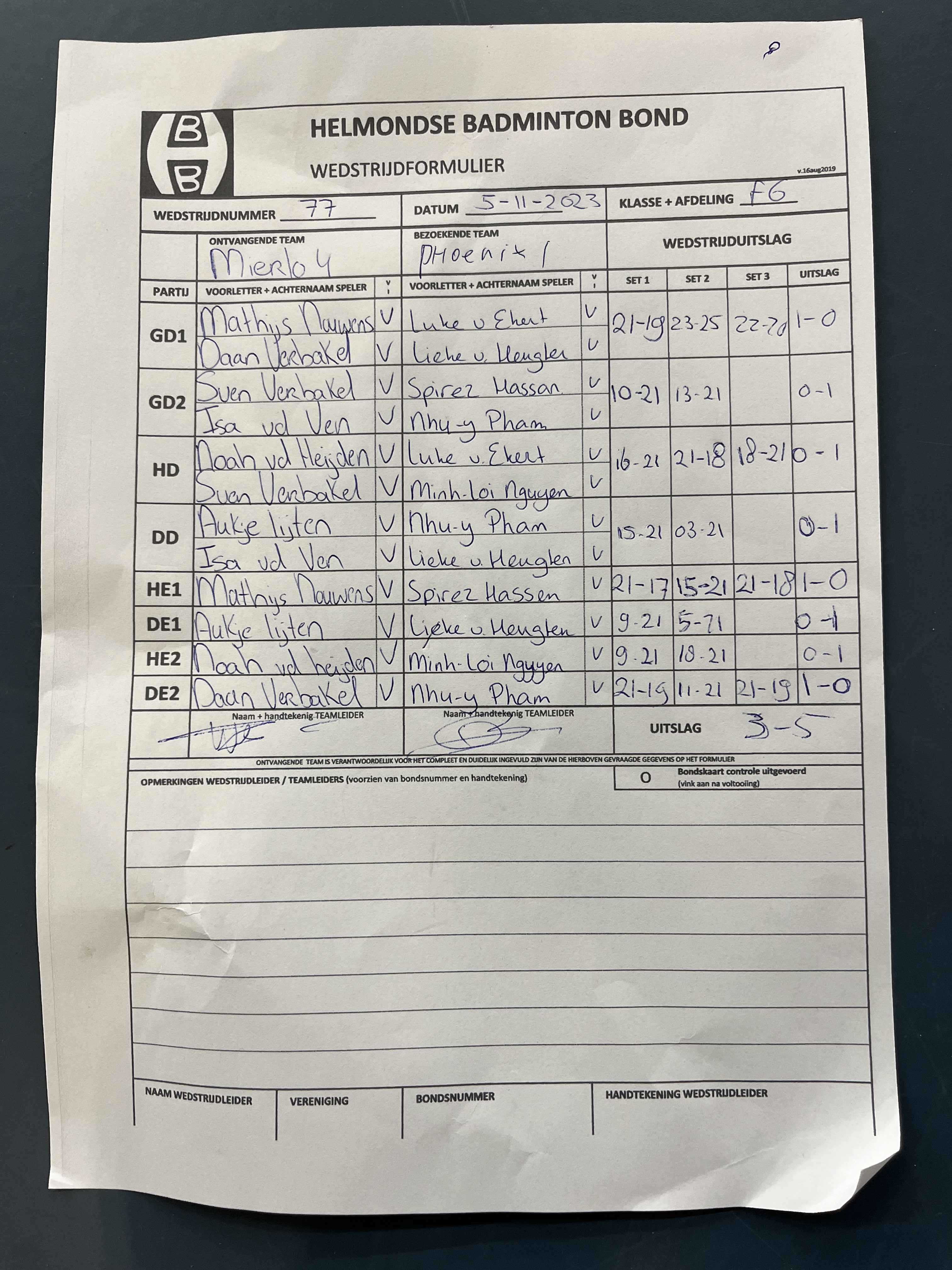 | 09:30 | zo. 05-11-2023 | Mierlo 4 | - | Phoenix 1 | 15 | 3 - 5 | ||