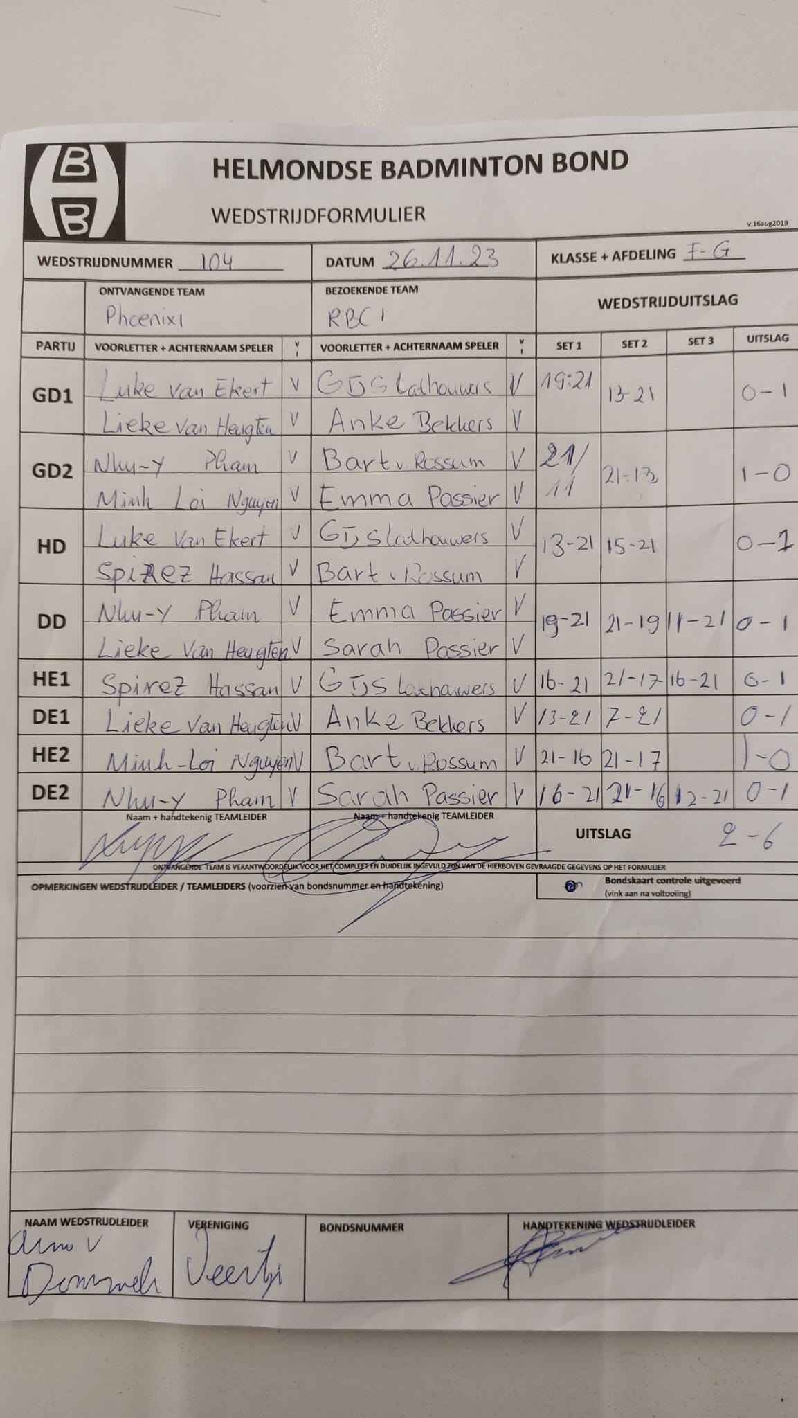 | 09:30 | zo. 26-11-2023 | Phoenix 1 | - | RBC 1 | 5 | 2 - 6 | ||