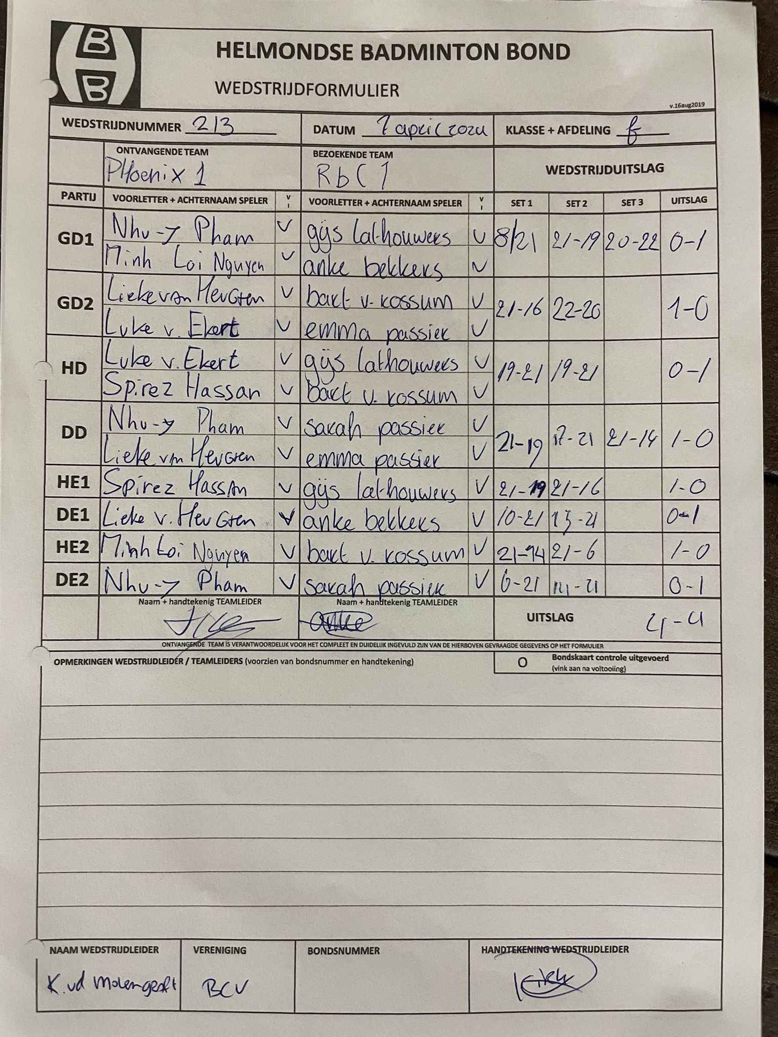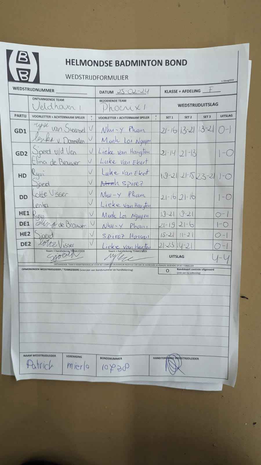 | 09:30 | zo. 04-02-2024 | Phoenix 1 | - | Mixed 3 | 12 | 6 - 2 | ||