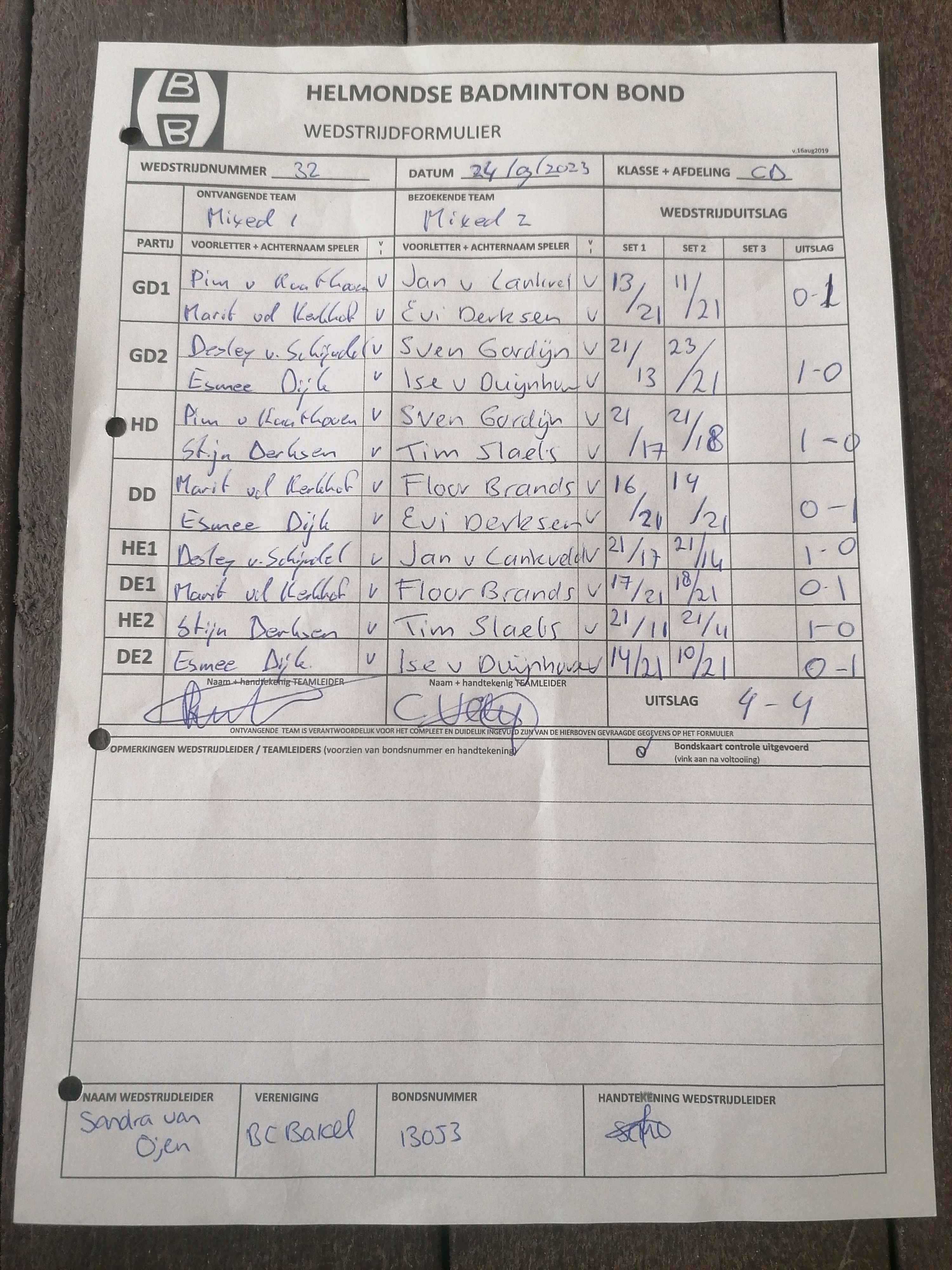 | 09:30 | zo. 24-09-2023 | Mixed 1 | - | Mixed 2 | 14 | 4 - 4 | ||