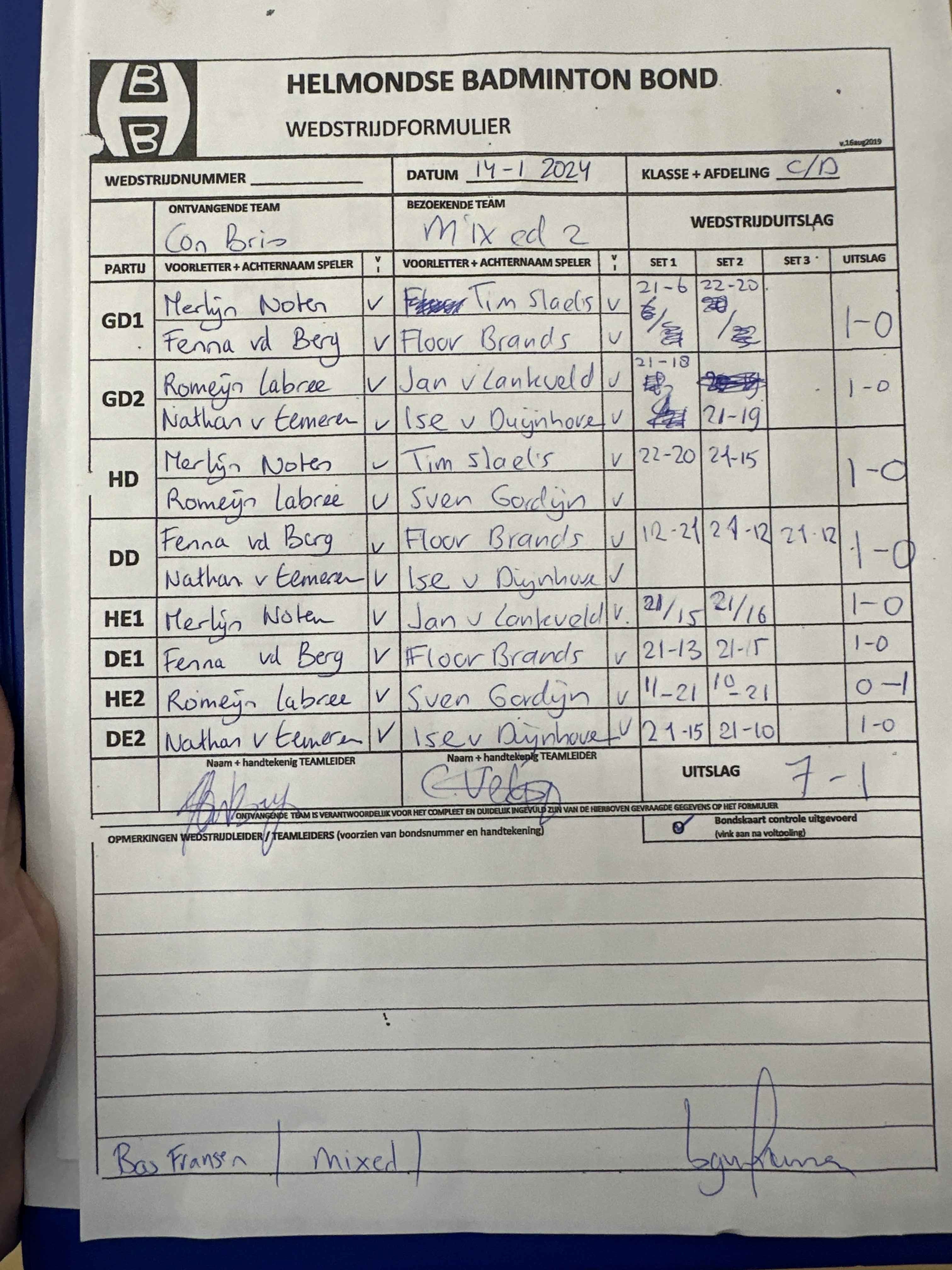 | 09:30 | zo. 14-01-2024 | Con Brio 1 | - | Mixed 2 | 15 | 7 - 1 | ||