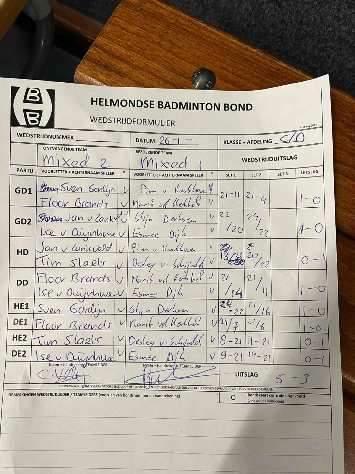 | 09:30 | zo. 19-11-2023 | Mixed 2 | - | De Valken 1 | 1 | 6 - 2 | ||