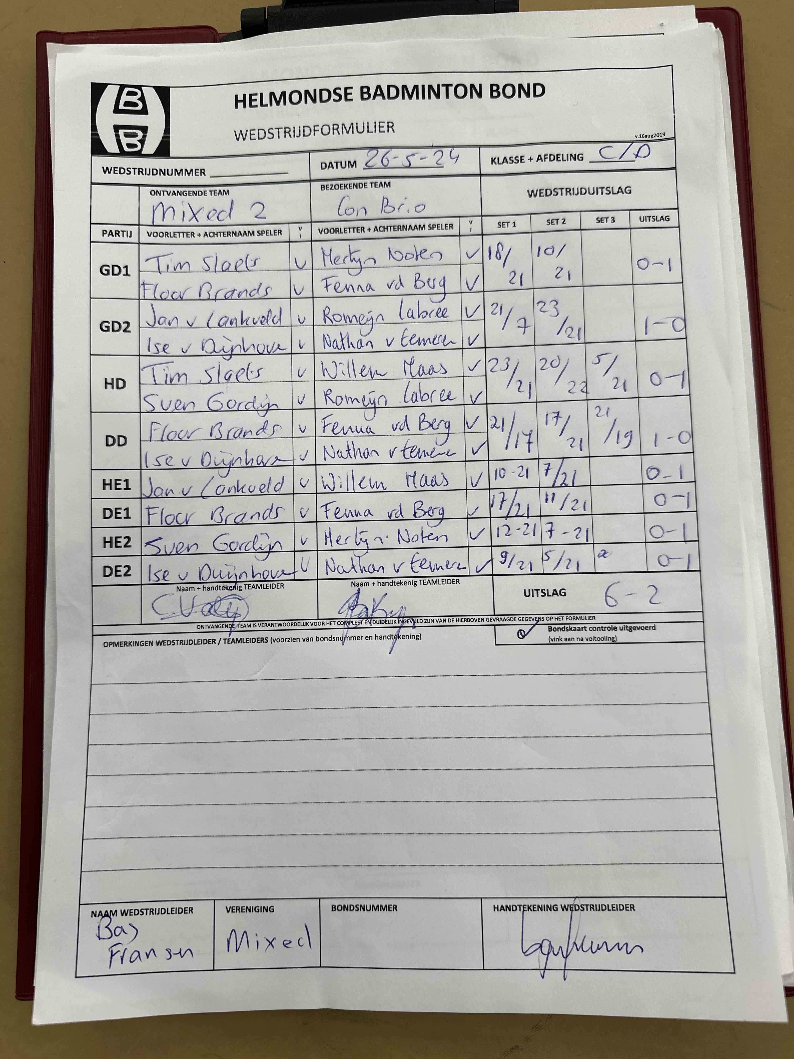 | 09:30 | zo. 26-05-2024 | Mixed 2 | - | Con Brio 1 | 5 | 2 - 6 |