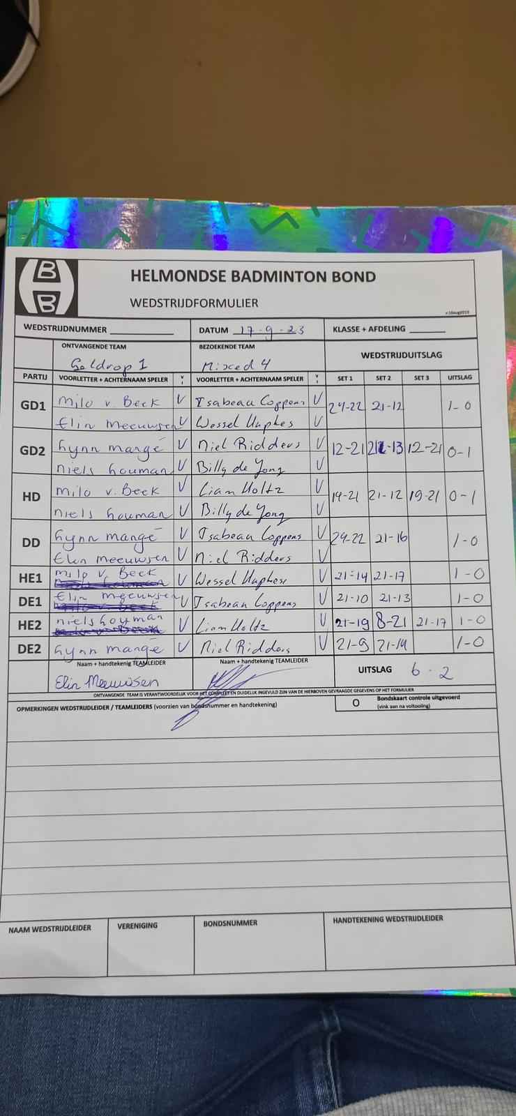 | 09:30 | zo. 17-09-2023 | Geldrop 1 | - | Mixed 4 | 4 | 6 - 2 | ||