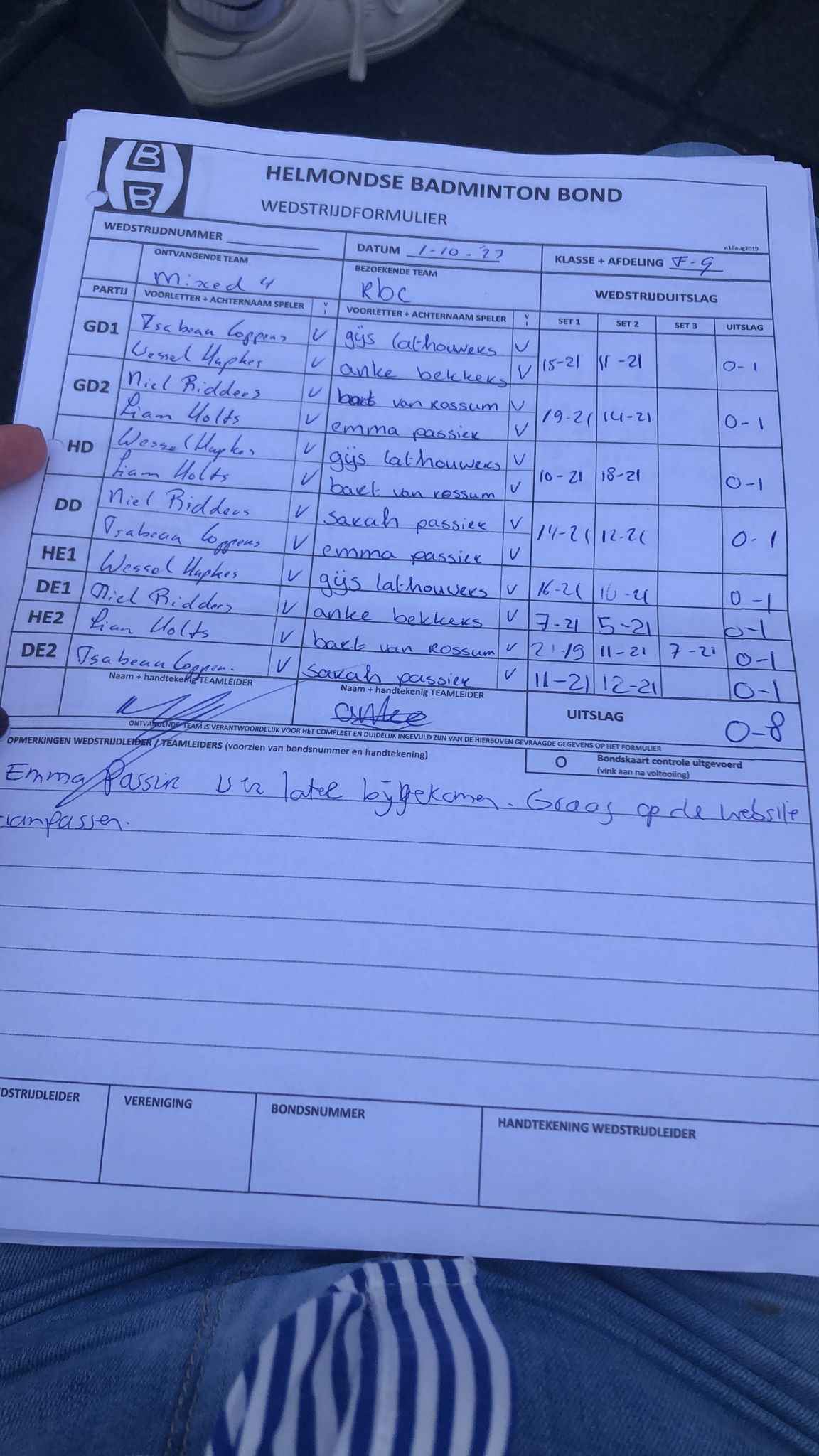 | 09:30 | zo. 01-10-2023 | Mixed 4 | - | RBC 1 | 4 | 0 - 8 | ||