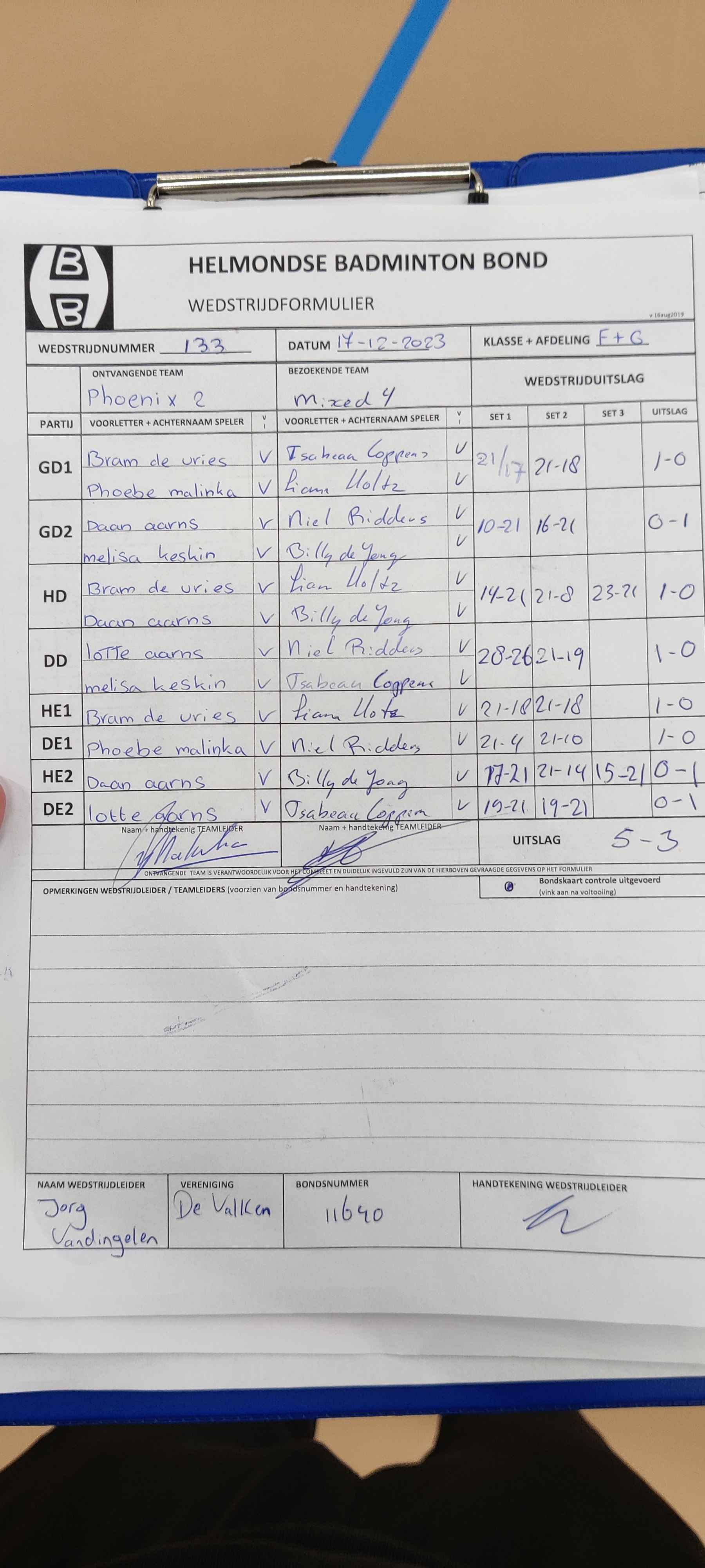 | 09:30 | zo. 17-12-2023 | Phoenix 2 | - | Mixed 4 | 4 | 5 - 3 | ||