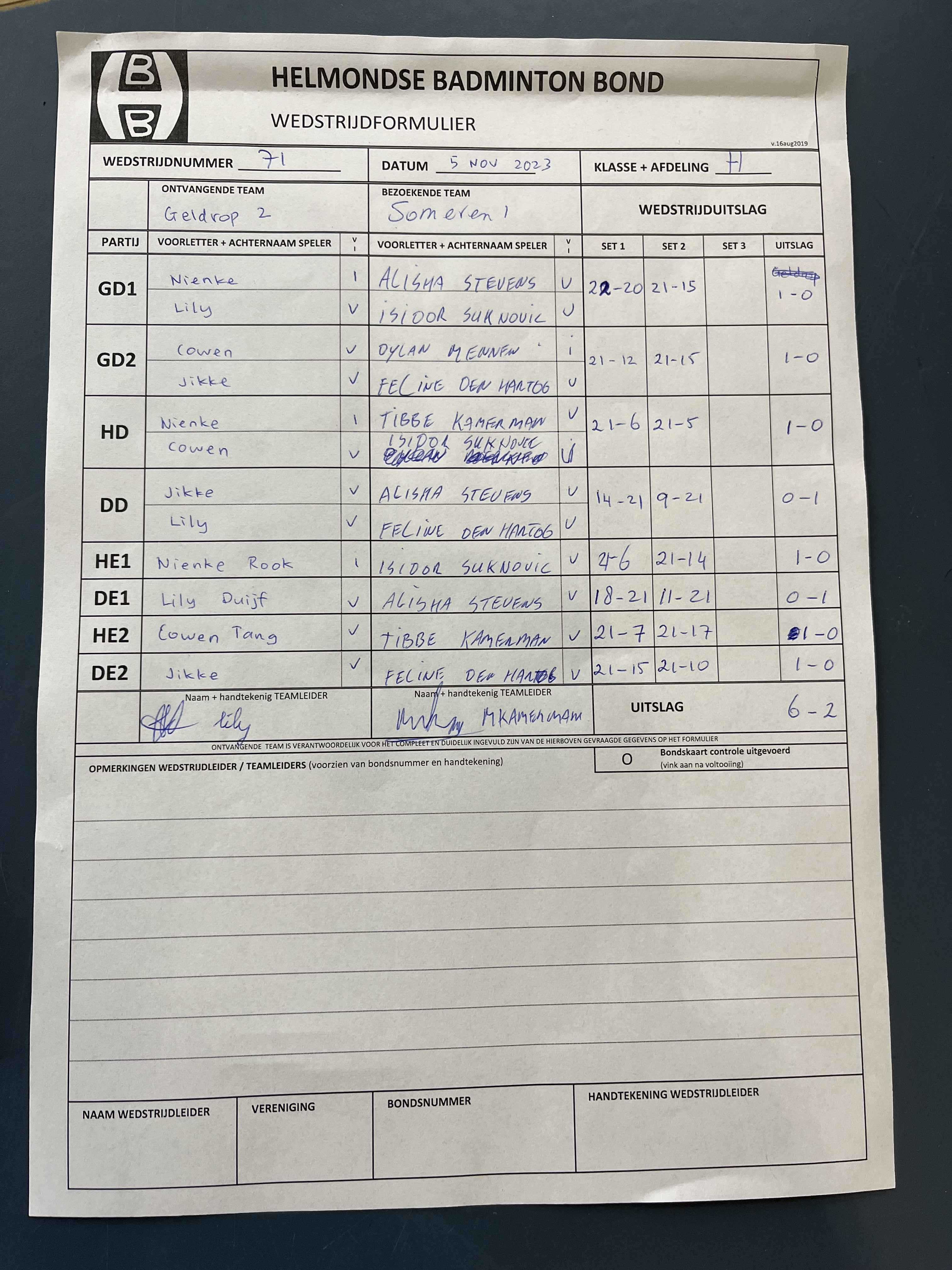 | 09:30 | zo. 05-11-2023 | Geldrop 2 | - | Someren 1 | 5 | 6 - 2 | ||