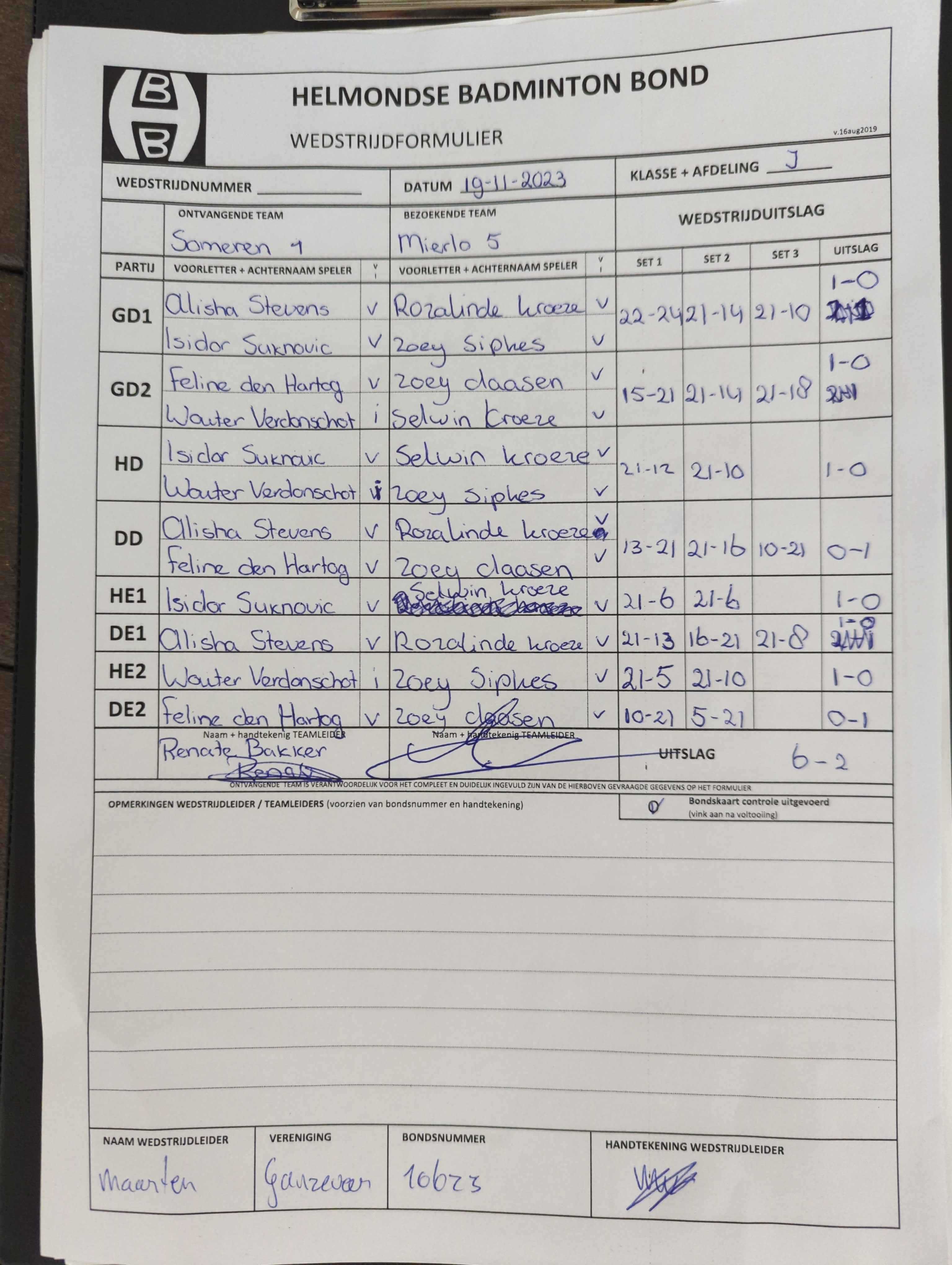 | 09:30 | zo. 19-11-2023 | Someren 1 | - | Mierlo 5 | 10 | 6 - 2 | ||