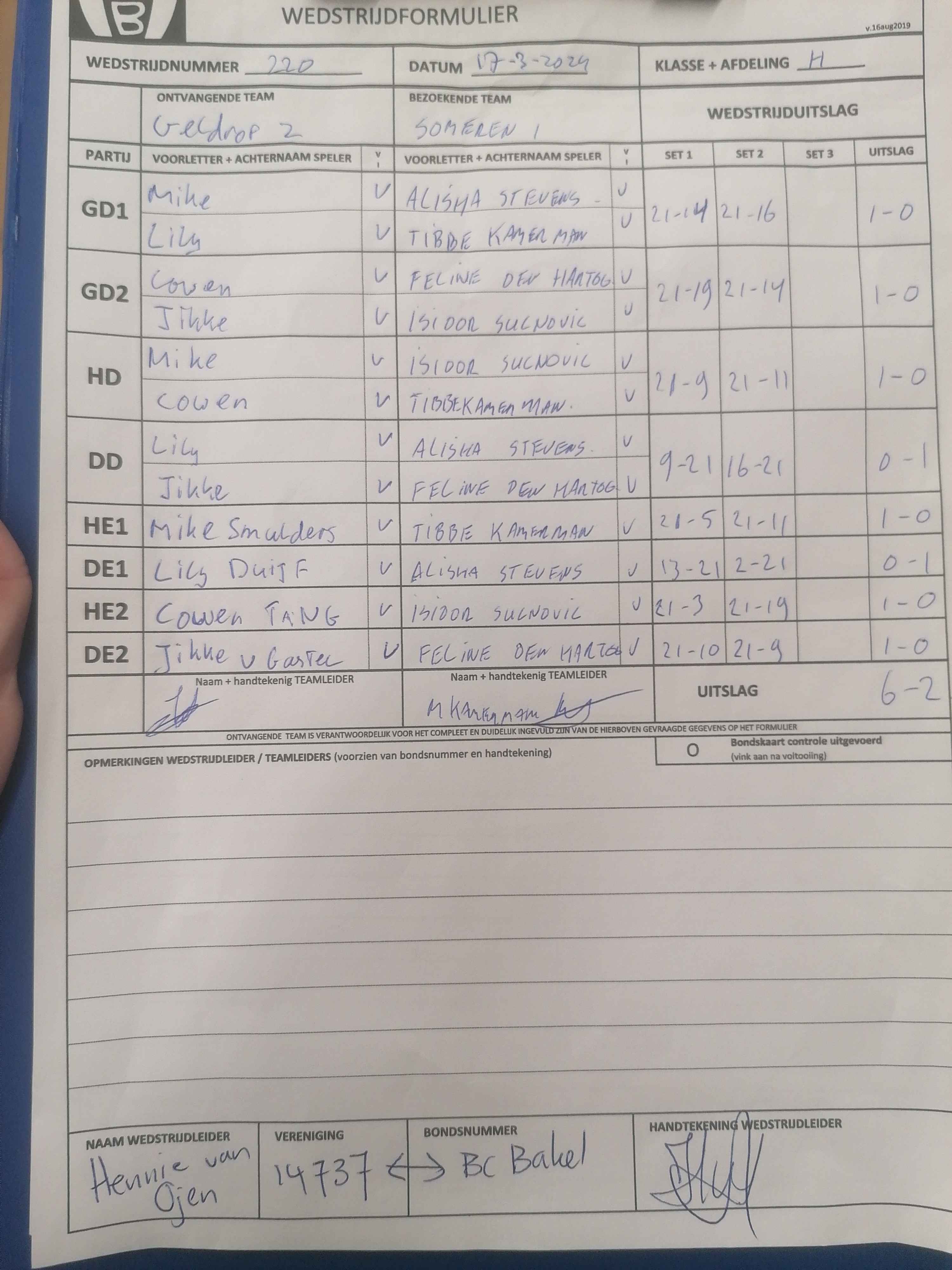 | 09:30 | zo. 03-03-2024 | Veldhoven 2 | - | Someren 1 | 4 | 6 - 2 | ||