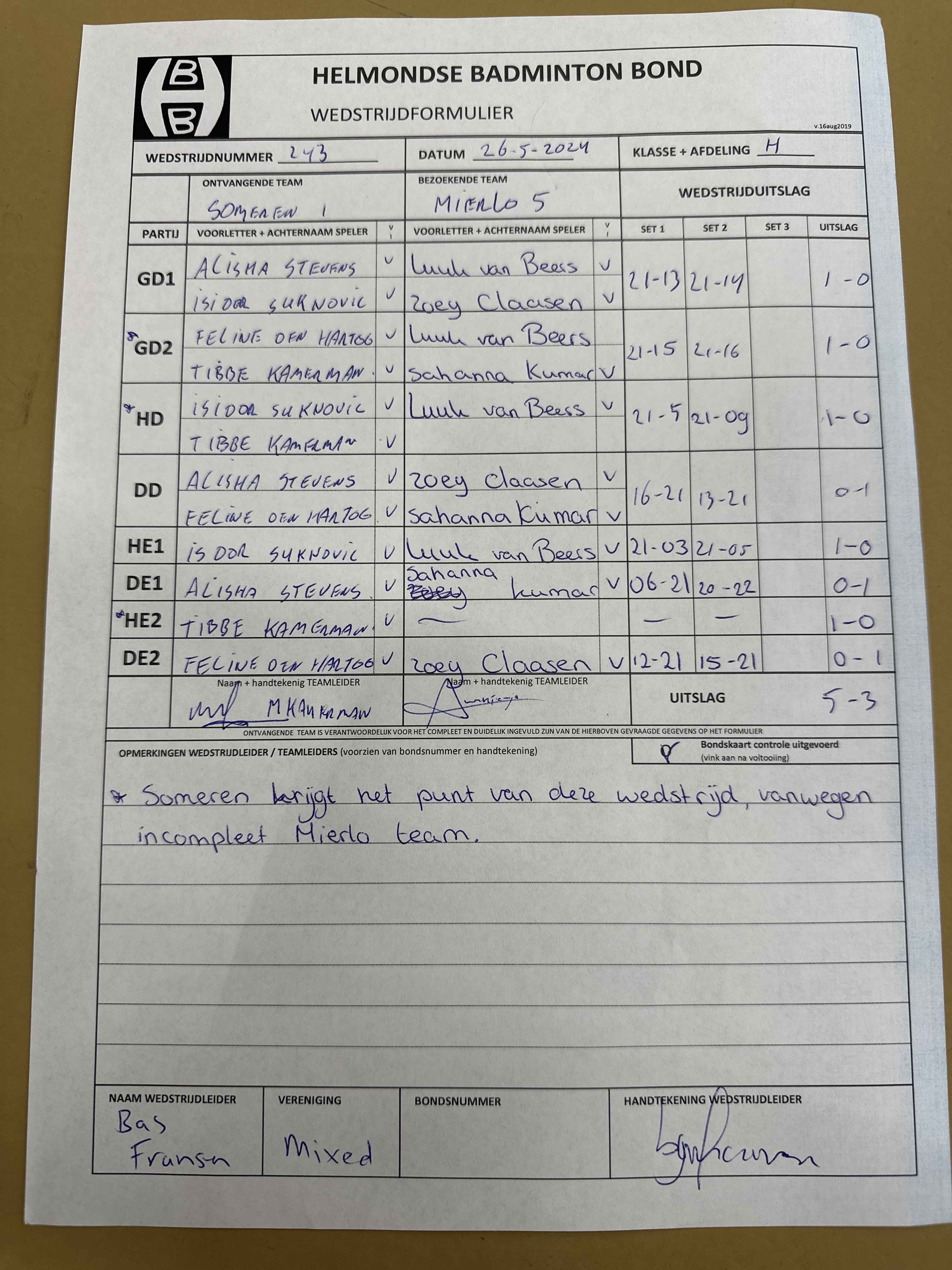 | 09:30 | zo. 26-05-2024 | Someren 1 | - | Mierlo 5 | 2 | 5 - 3 | ||