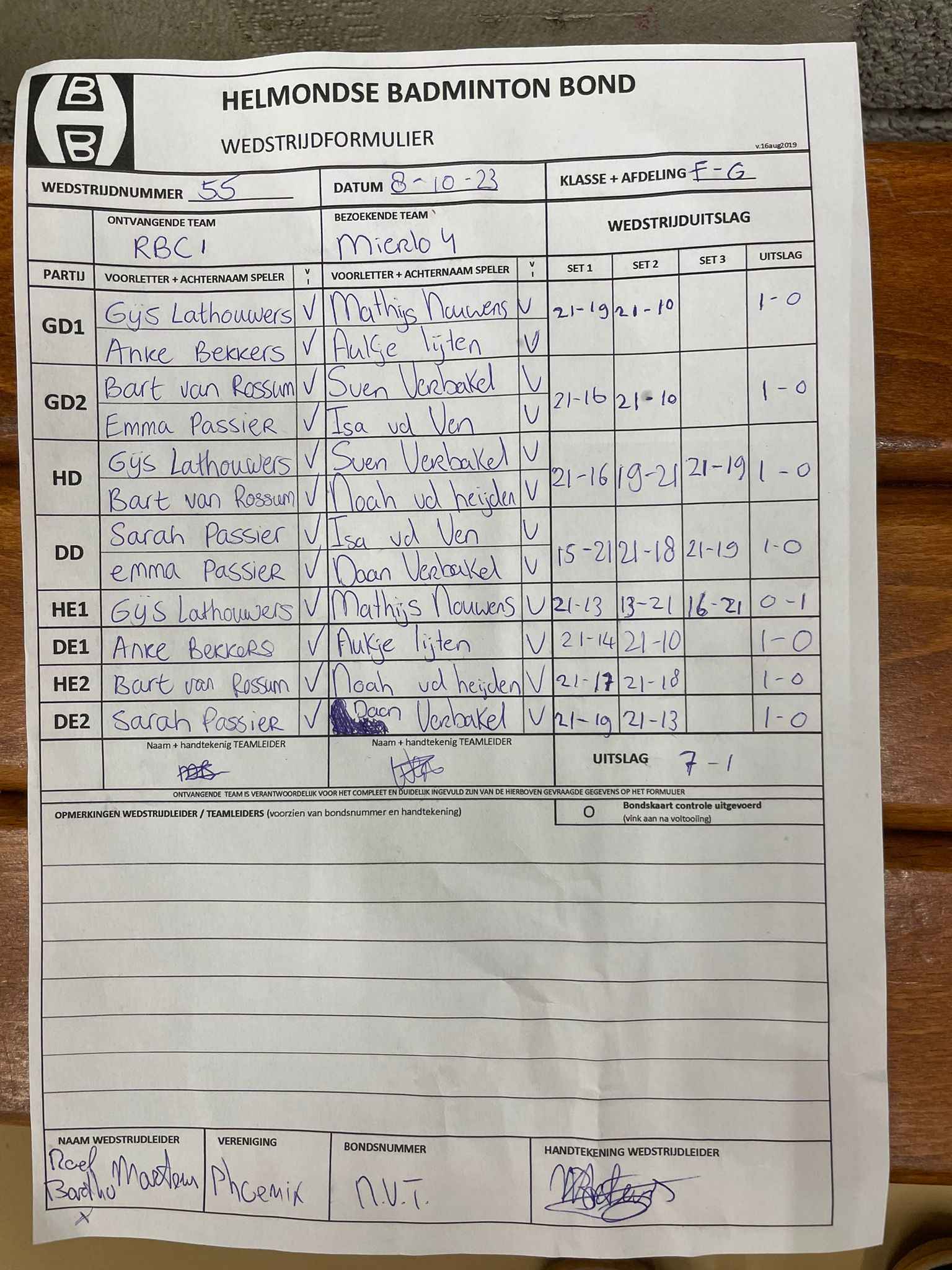 | 09:30 | zo. 08-10-2023 | RBC 1 | - | Mierlo 4 | 15 | 7 - 1 | ||