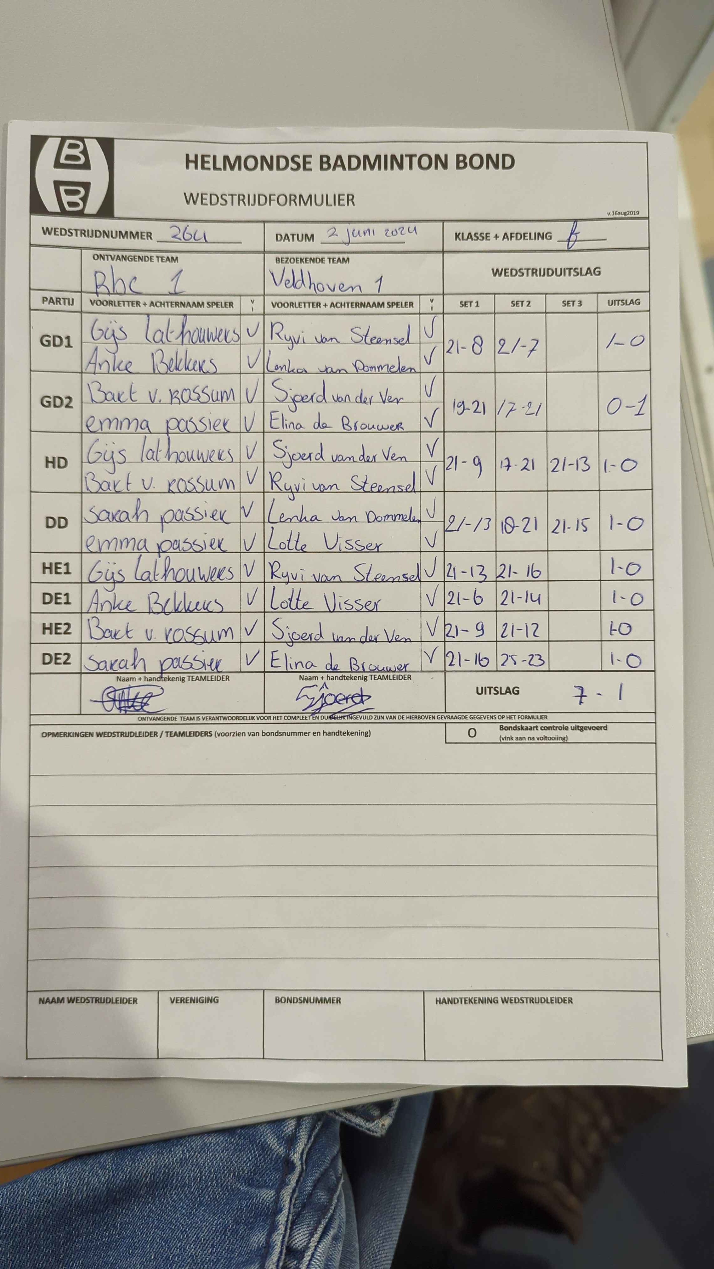 | 09:30 | zo. 02-06-2024 | RBC 1 | - | Veldhoven 1 | 11 | 7 - 1 | ||