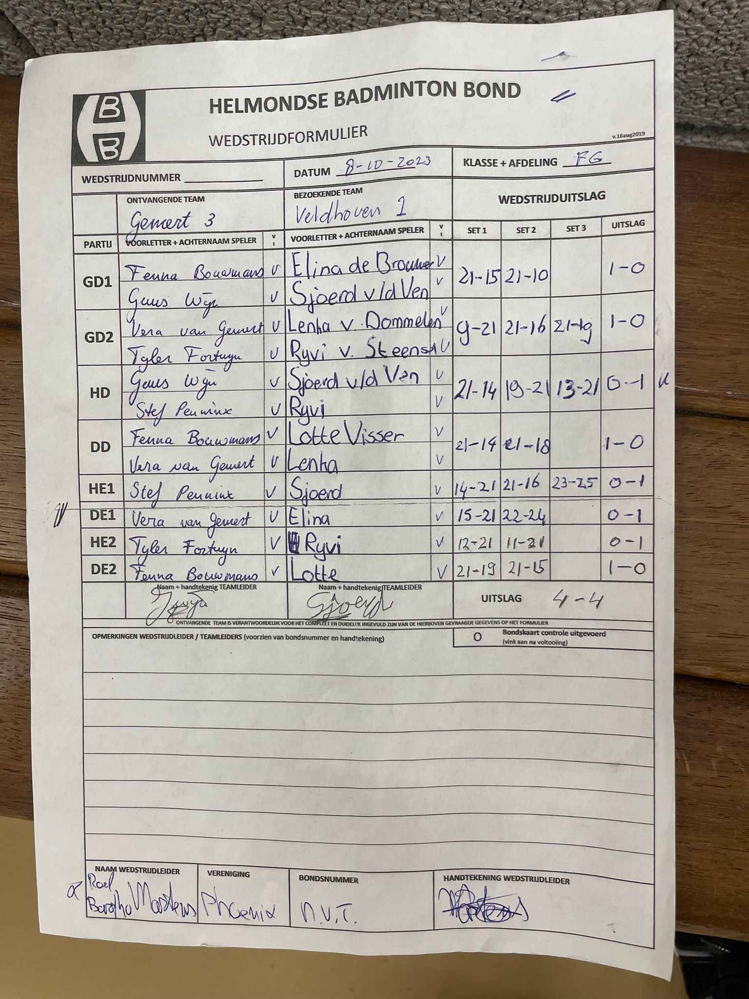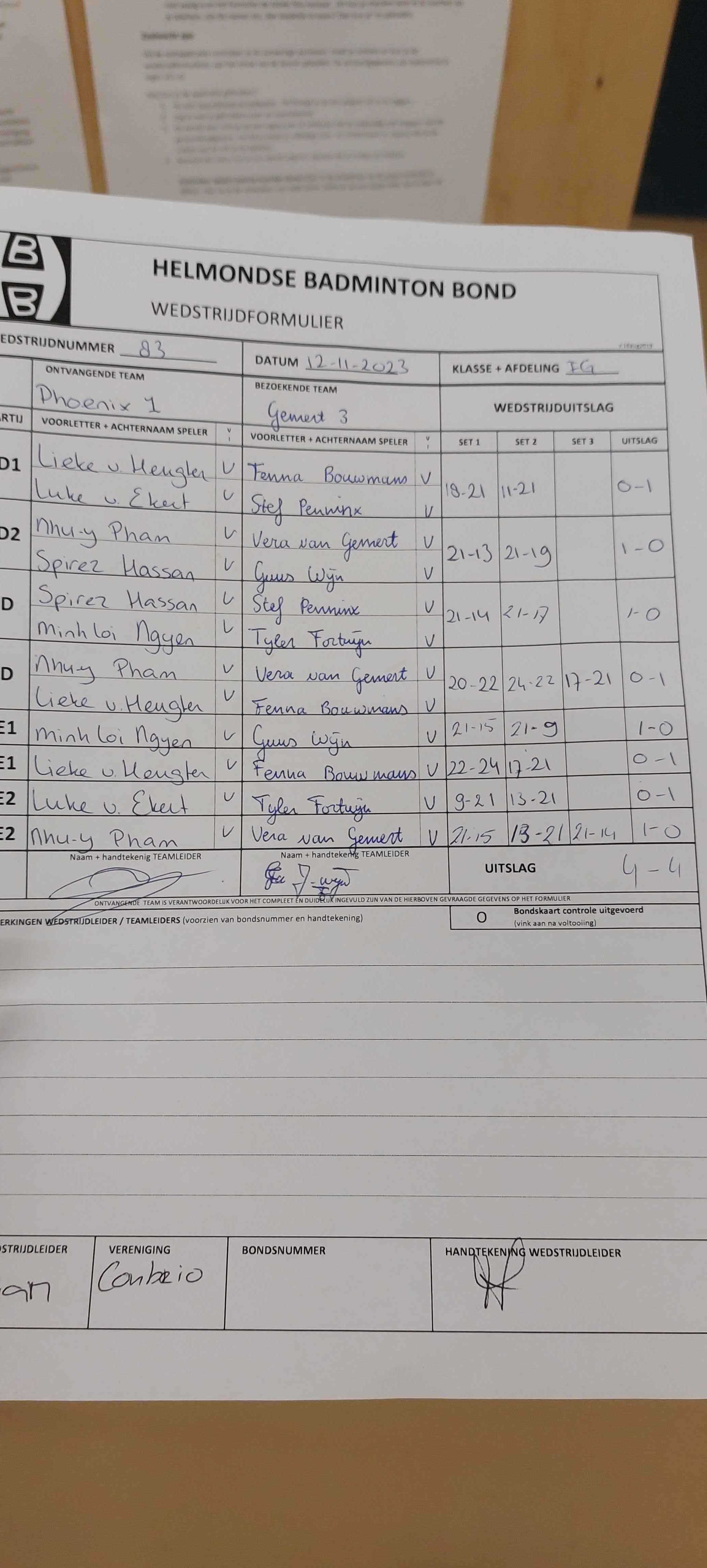 | 09:30 | zo. 12-11-2023 | Phoenix 1 | - | Gemert 3 | 10 | 4 - 4 | ||