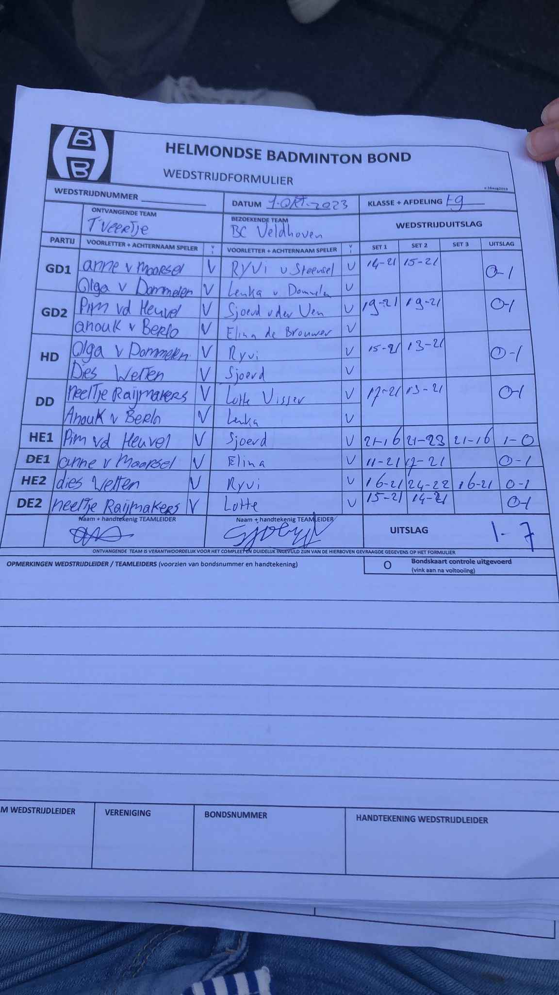 | 09:30 | zo. 01-10-2023 | 't Veertje 1 | - | Veldhoven 1 | 1 | 1 - 7 | ||