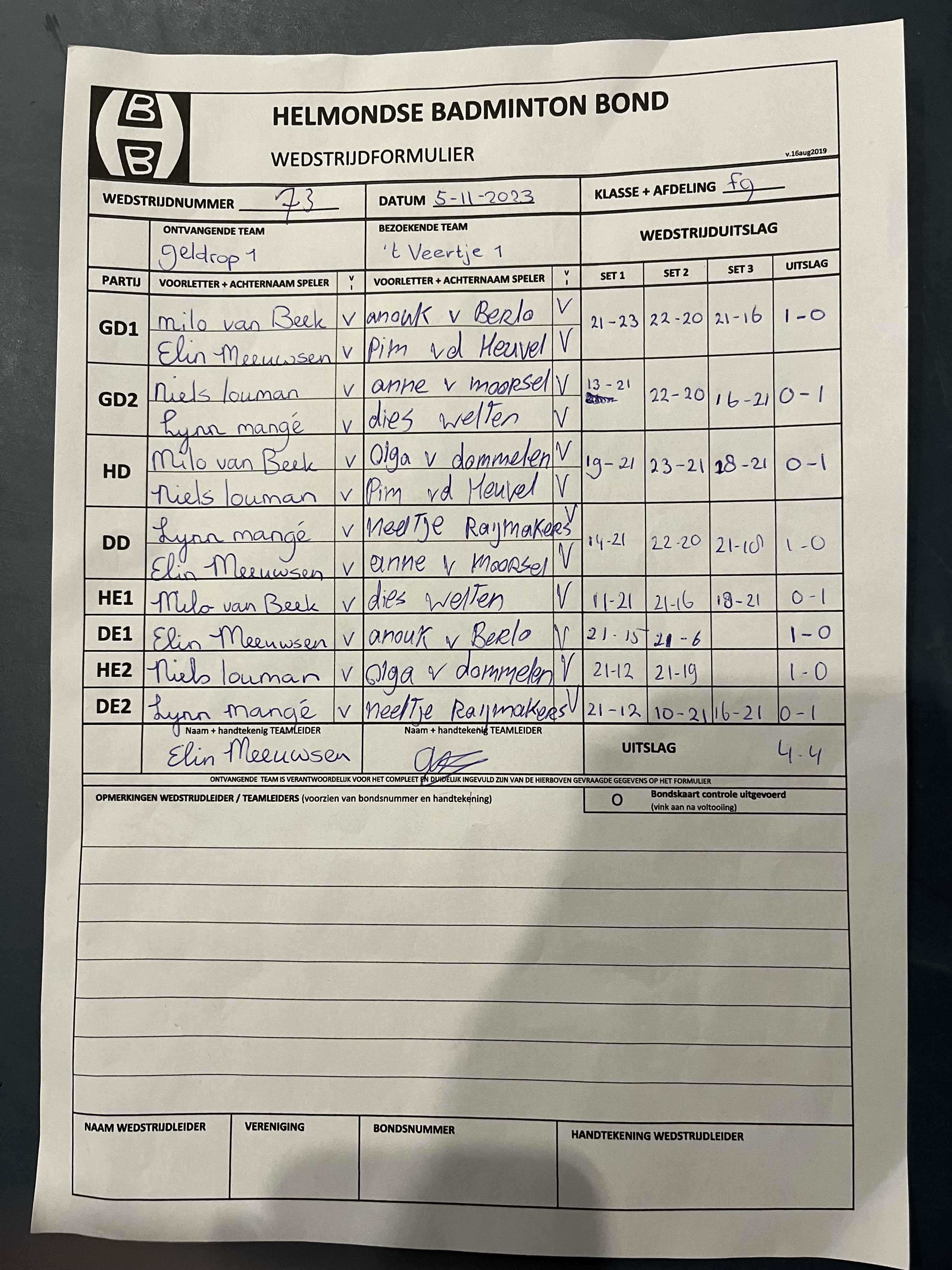 | 09:30 | zo. 05-11-2023 | Geldrop 1 | - | 't Veertje 1 | 11 | 4 - 4 | ||