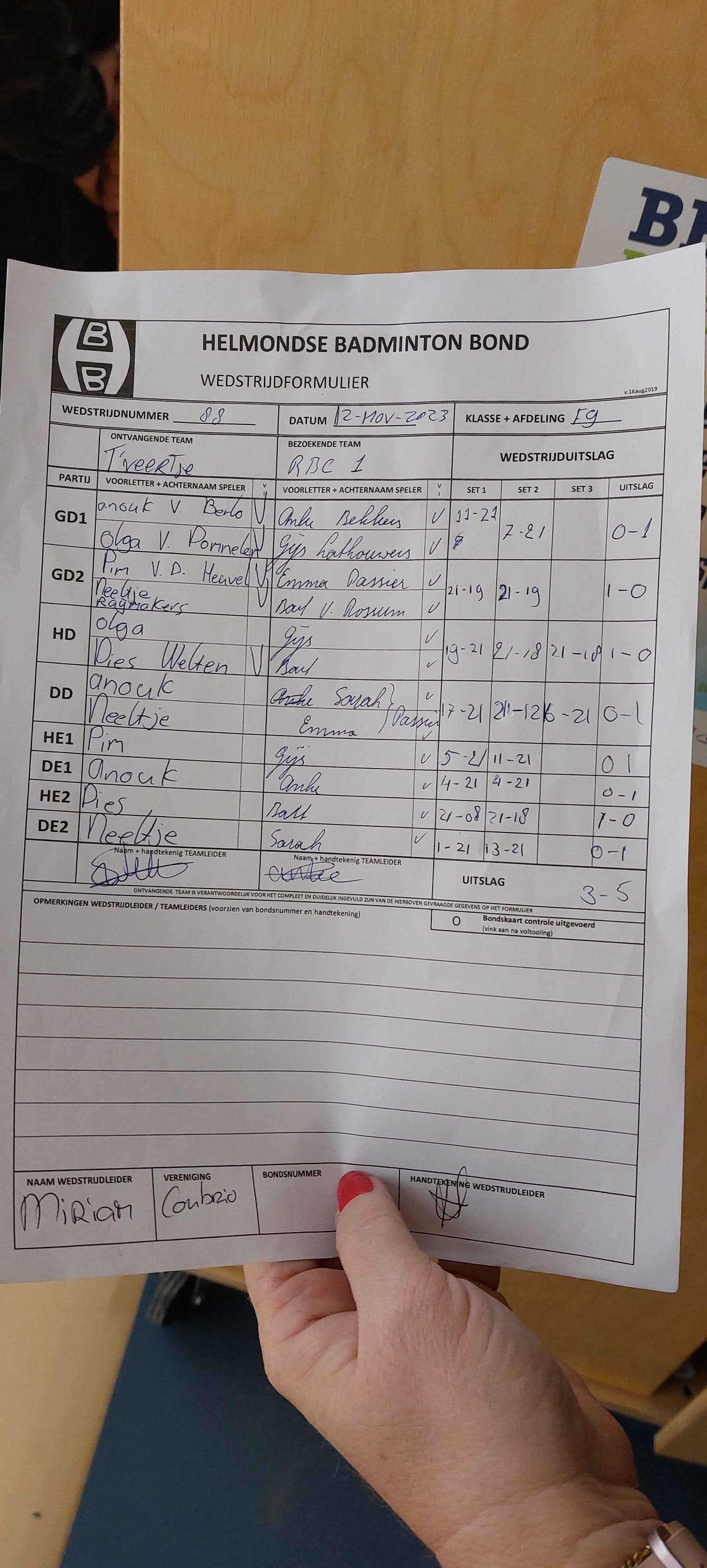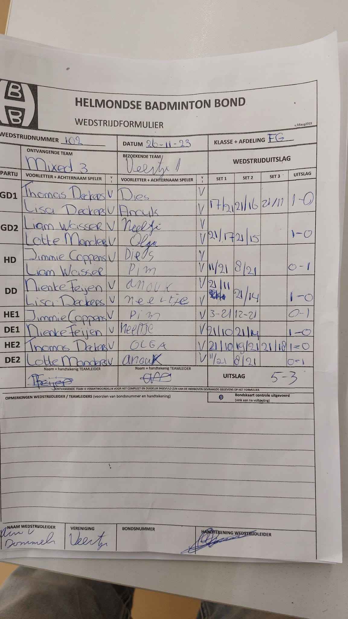 | 09:30 | zo. 26-11-2023 | Mixed 3 | - | 't Veertje 1 | 3 | 5 - 3 | ||