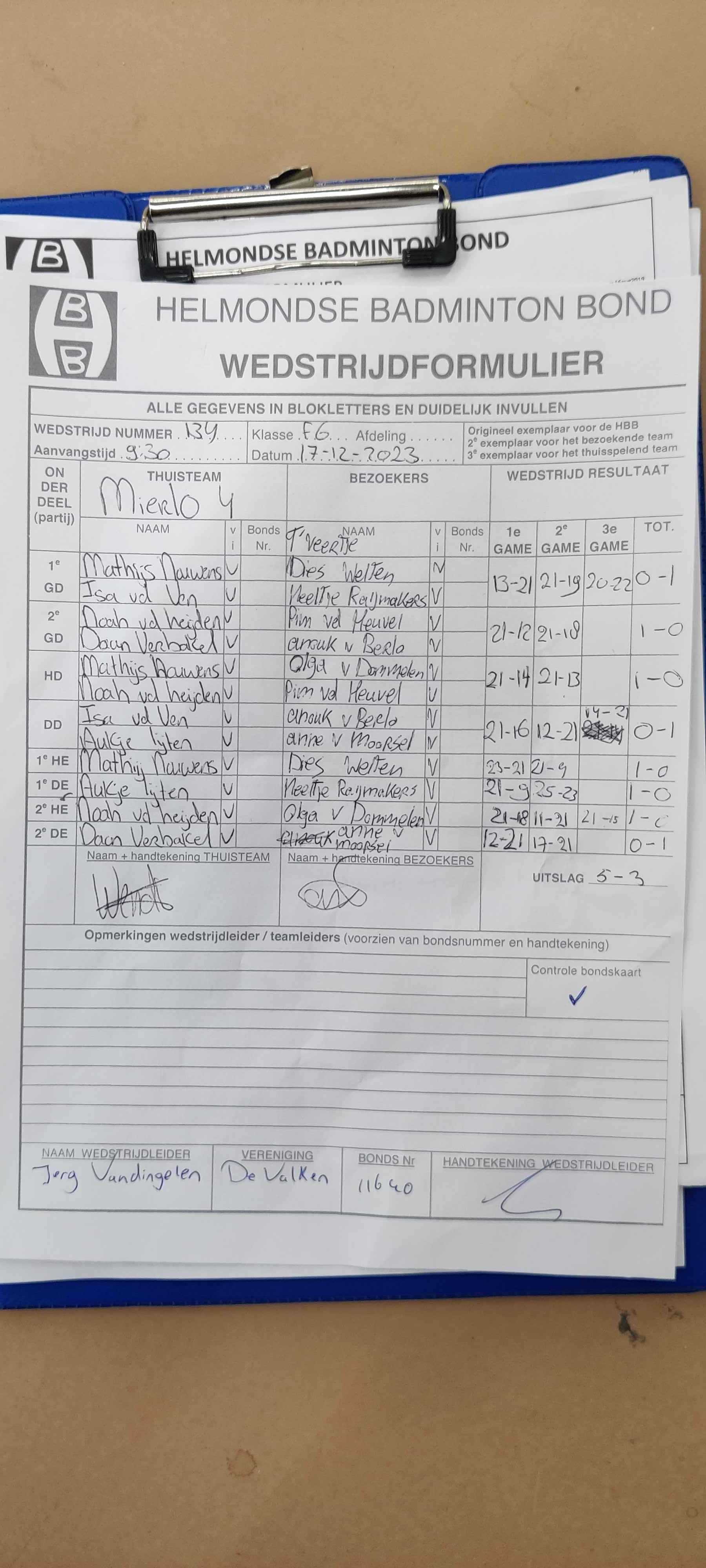 | 09:30 | zo. 17-12-2023 | Mierlo 4 | - | 't Veertje 1 | 5 | 5 - 3 | ||