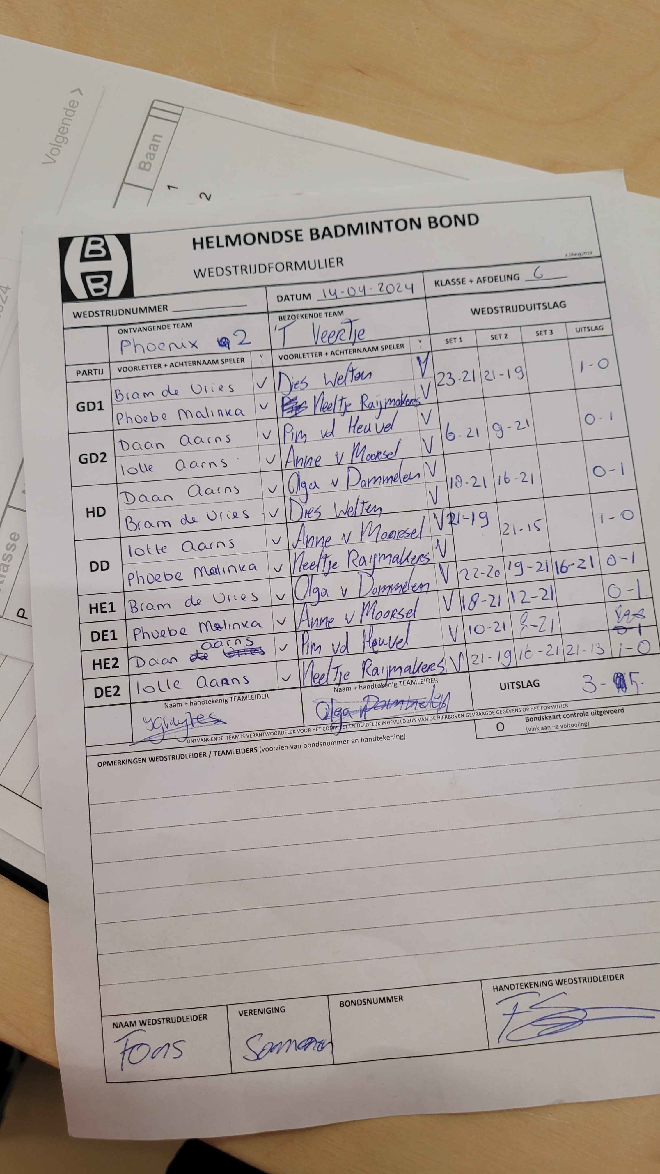 | 09:30 | zo. 07-04-2024 | 't Veertje 1 | - | Mixed 5 | 13 | 5 - 3 | ||