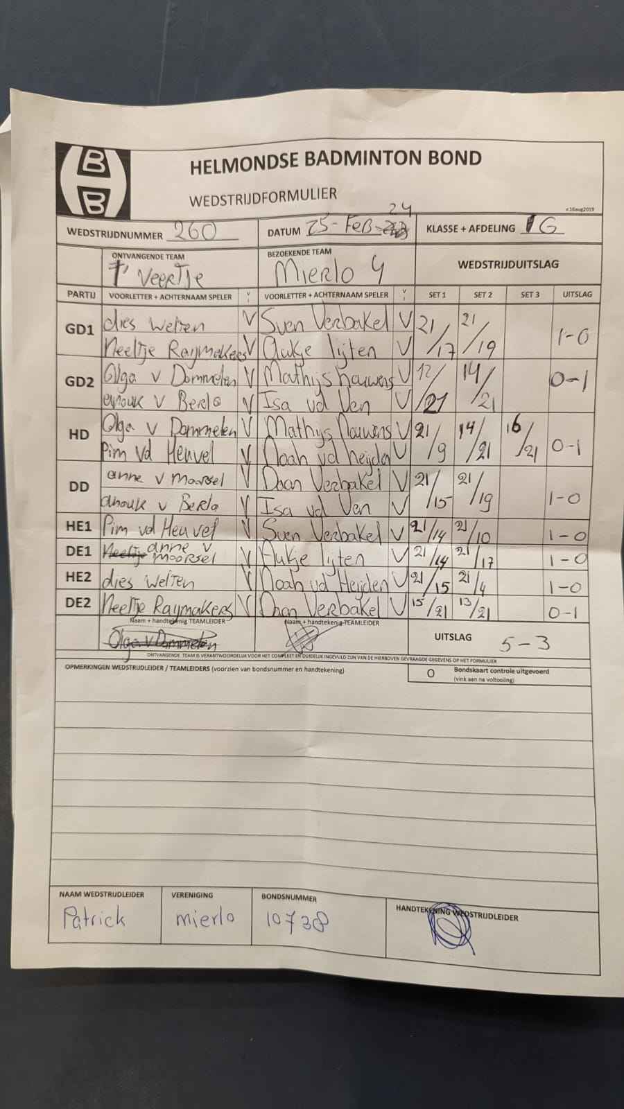 | 09:30 | zo. 25-02-2024 | 't Veertje 1 | - | Mierlo 4 | 5 | 5 - 3 | ||