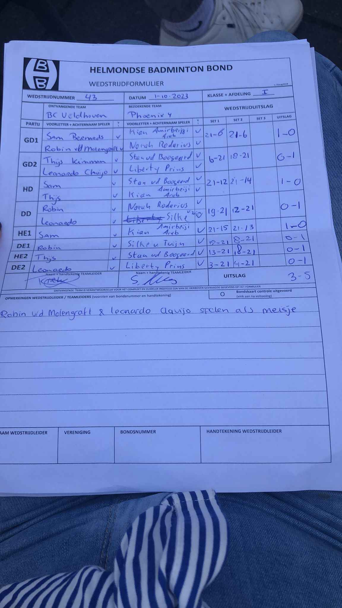 | 09:30 | zo. 01-10-2023 | Veldhoven 3 | - | Phoenix 4 | 12 | 3 - 5 | ||