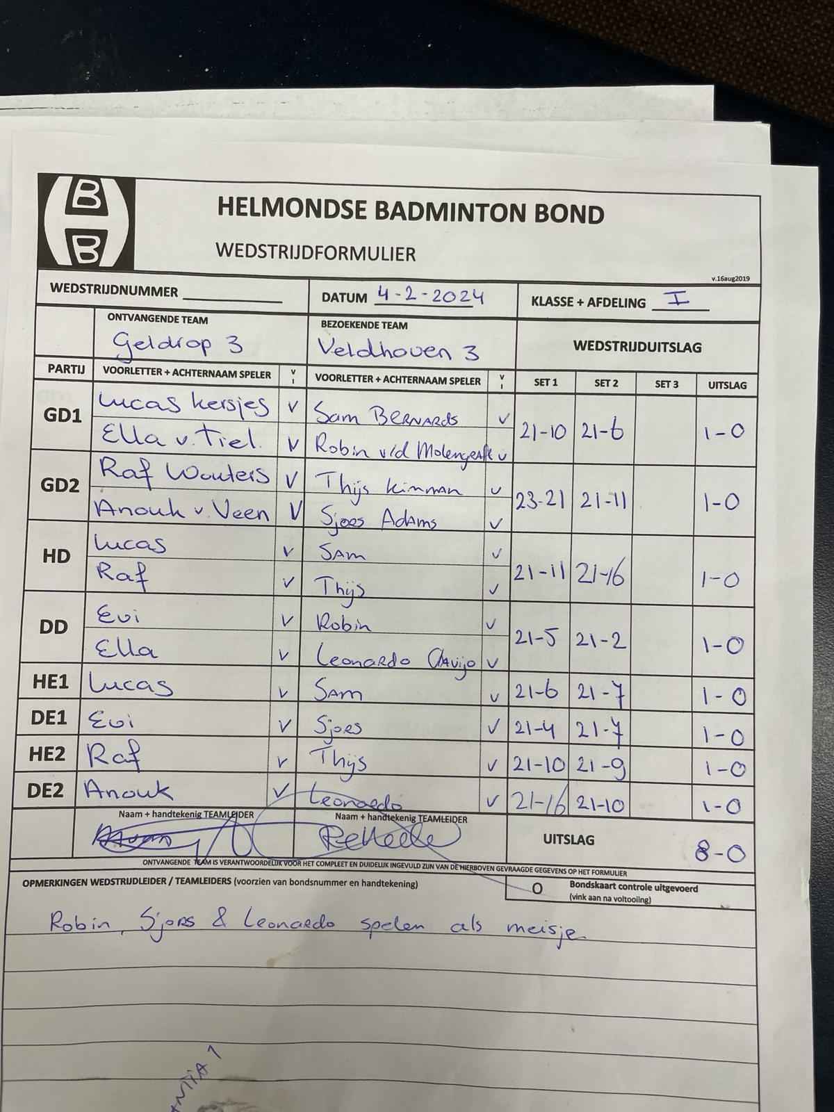 | 09:30 | zo. 04-02-2024 | Geldrop 3 | - | Veldhoven 3 | 15 | 8 - 0 | ||